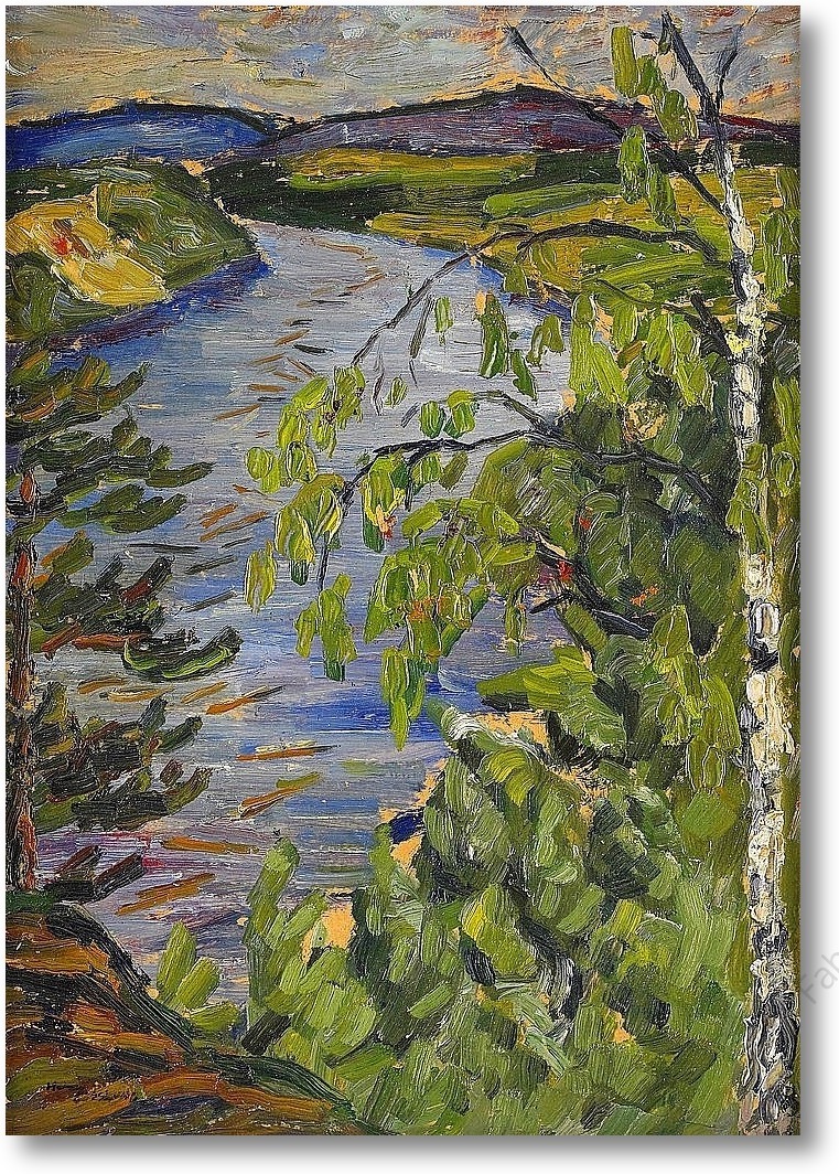 Репродукция картины "Пейзажи Северной Швеции с водопадом"