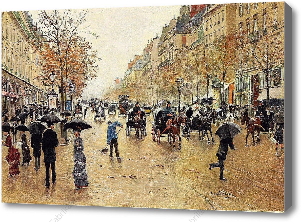 Репродукция картины "Бульвар Пуассоньер осенью"