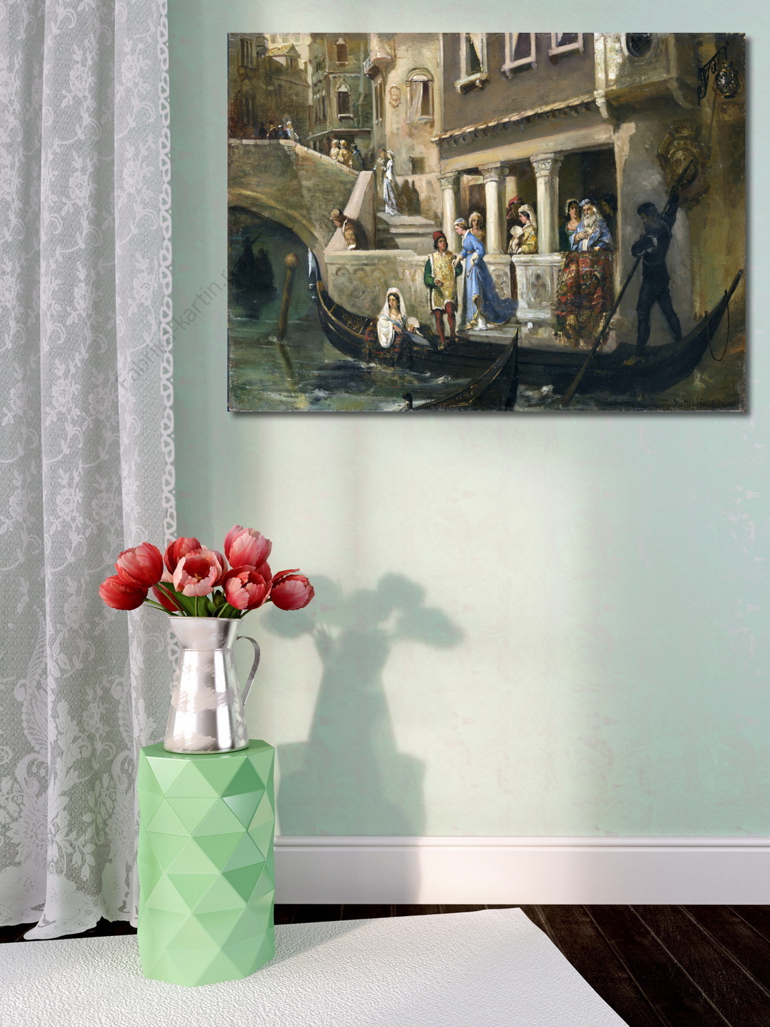 Репродукция картины "Знатные венецианцы у гондолы "