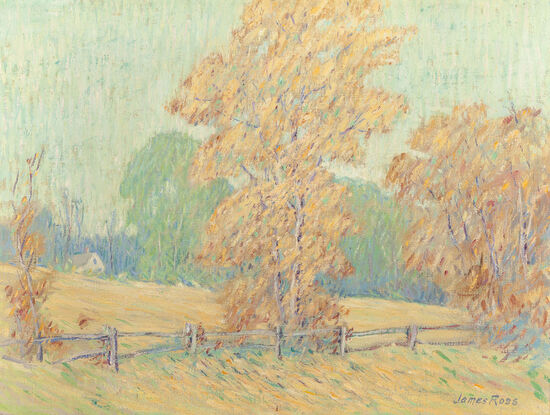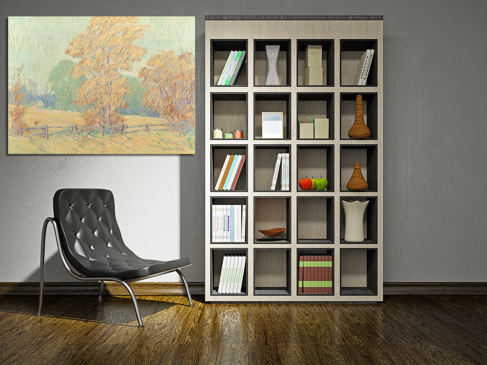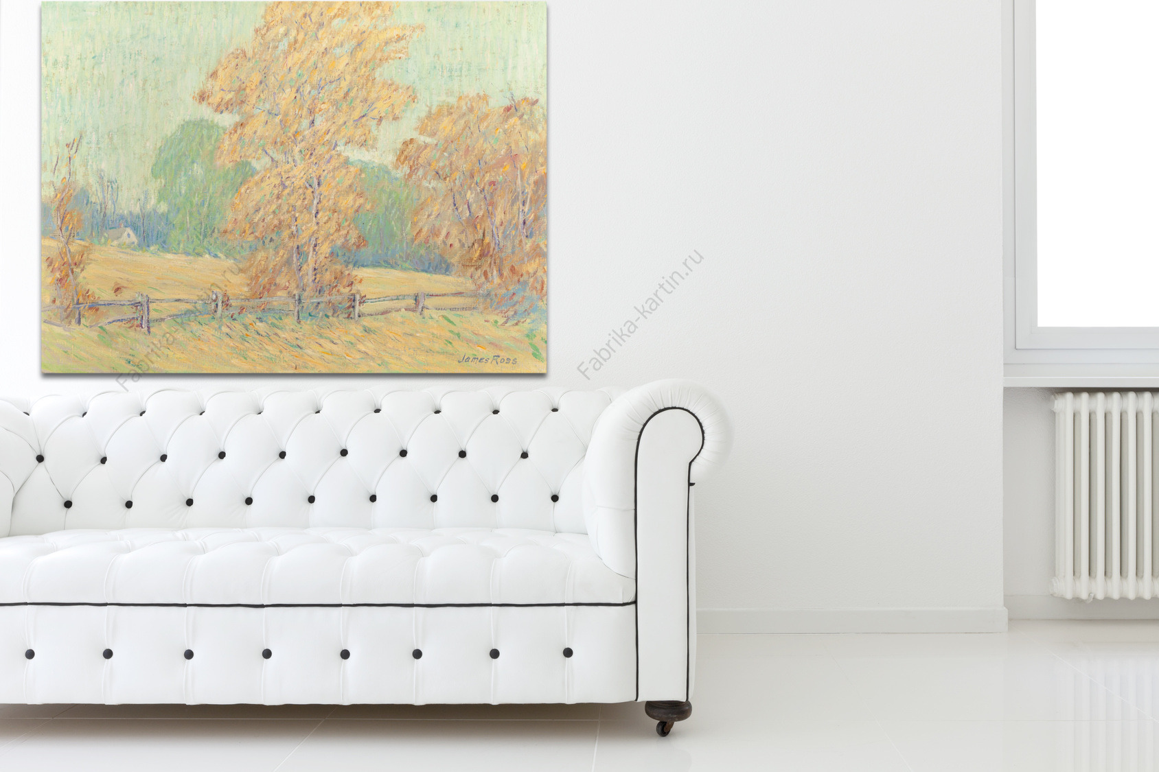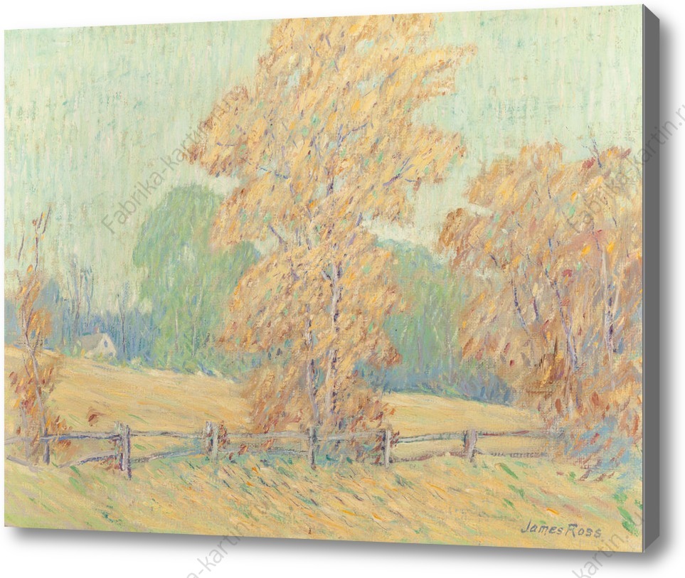 Репродукция картины "Старые деревянные ограды на ферме, осень "