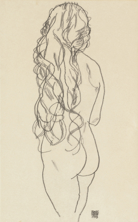 Репродукция картины "Стоящая обнаженная с длинными волосами"