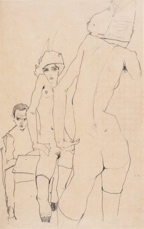 Репродукция картины "Шиле с обнаженной моделью у зеркала"