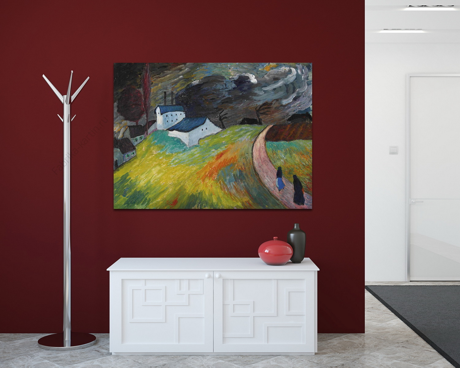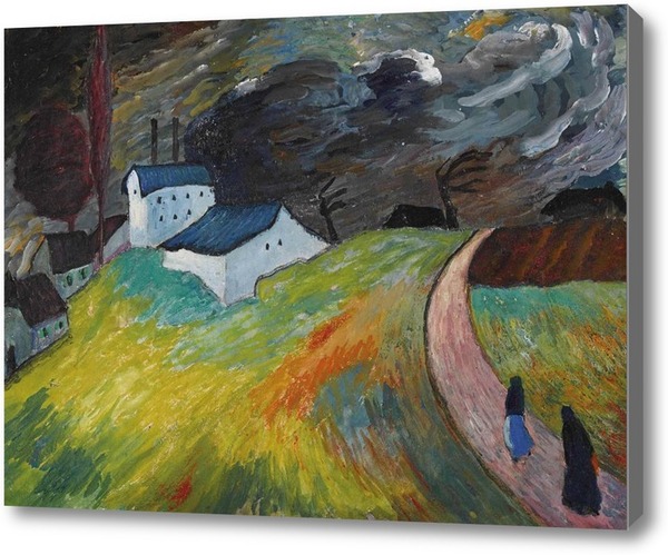Репродукция картины "Сельский ландшафт с 2 возвращающимися домой женщинами"