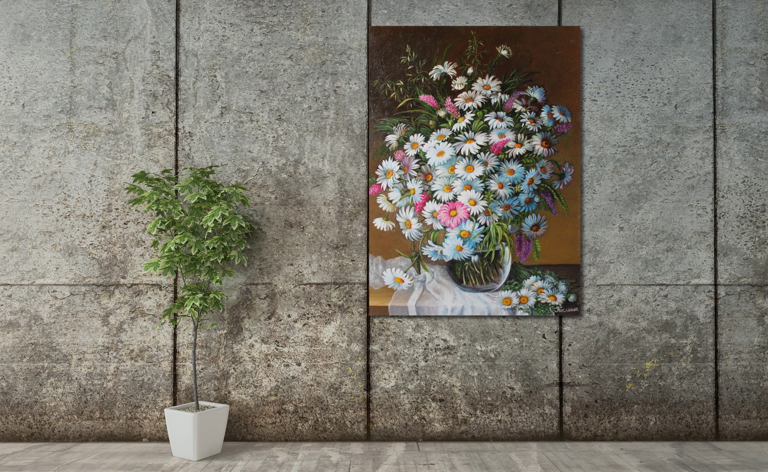 Репродукция картины "Ромашки в стеклянной вазе."