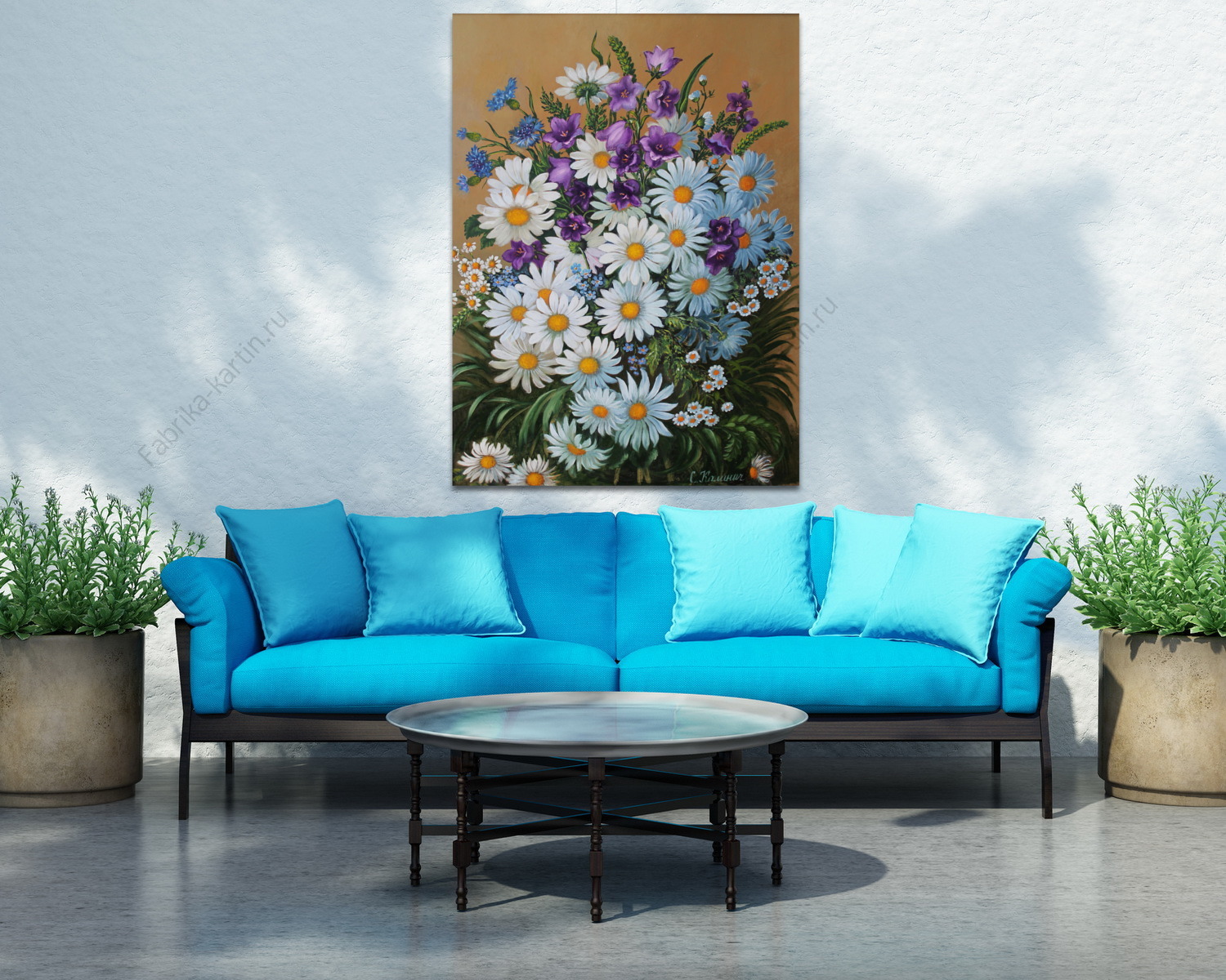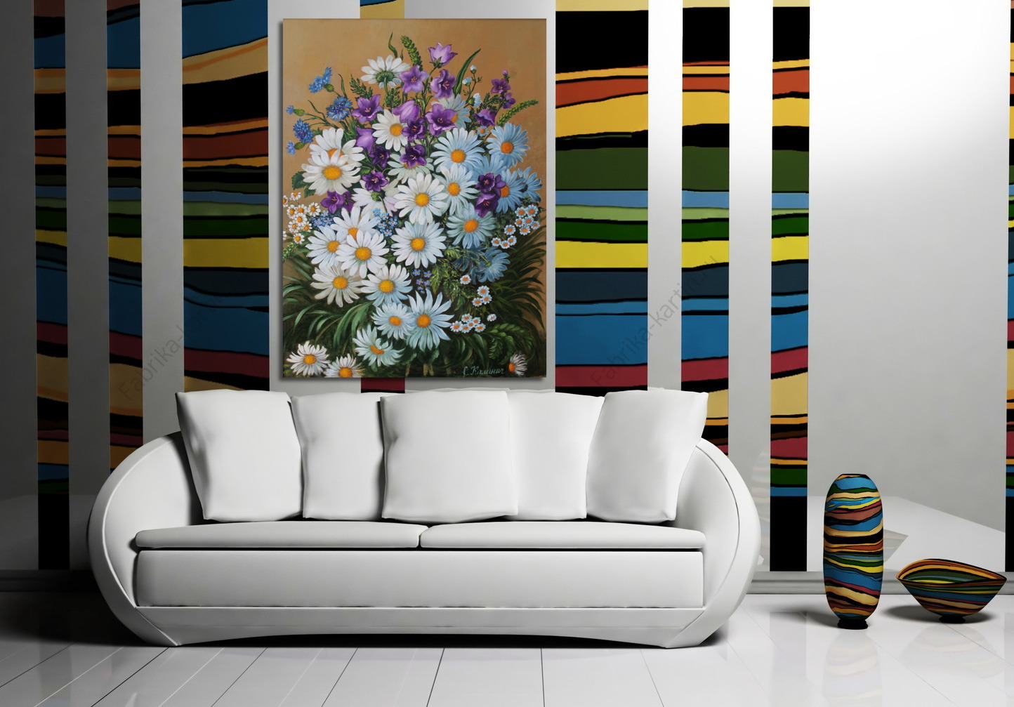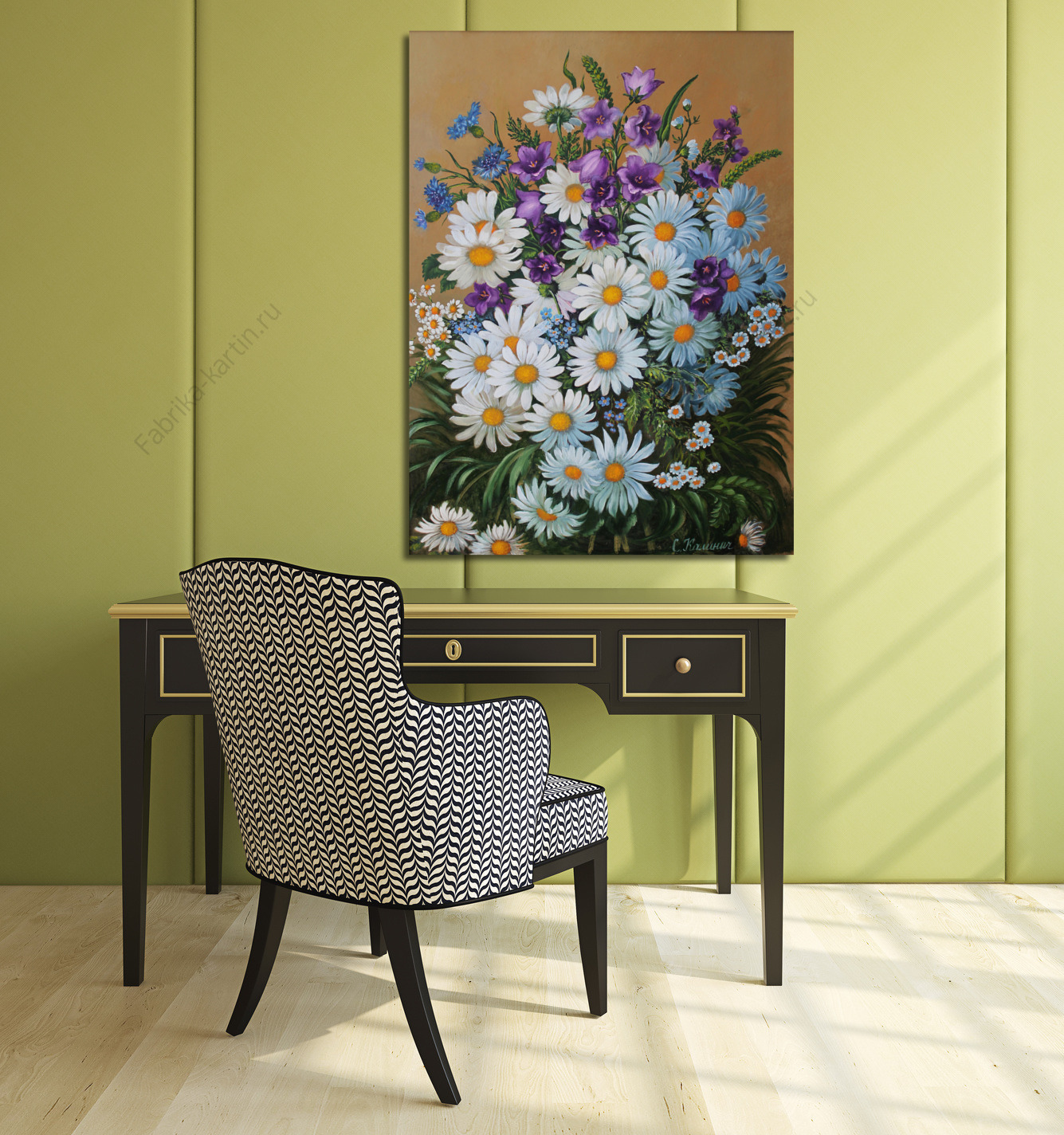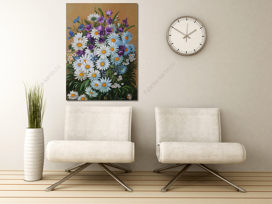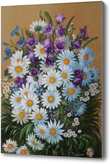 Репродукция картины "Композиция из ромашек и колокольчиков."