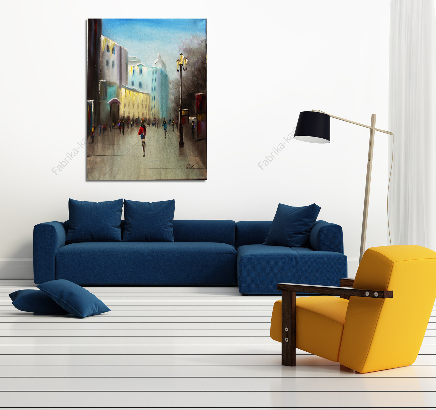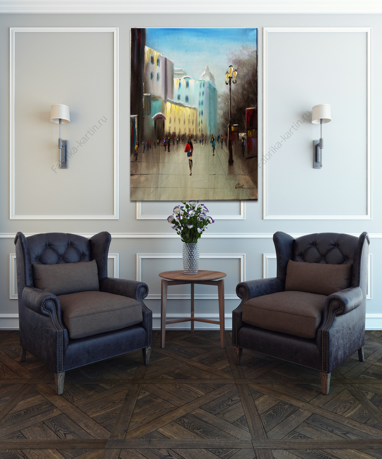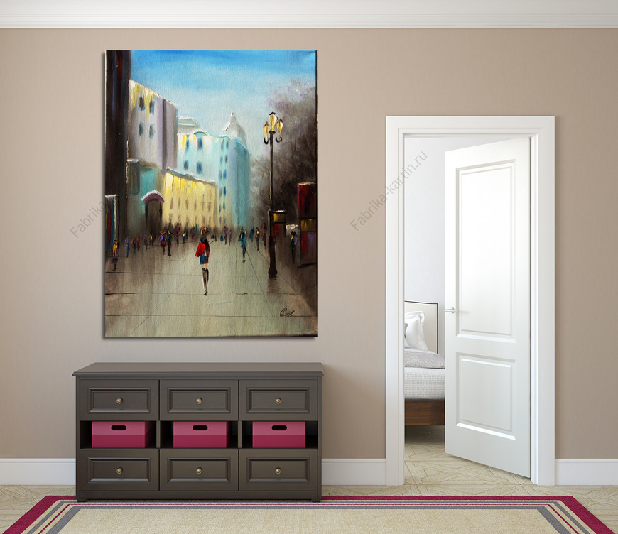 Репродукция картины "Картина маслом. Город в сумерках. Арбат. "