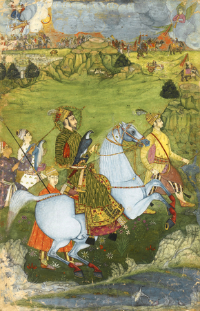 Репродукция картины "Принц держит сокола и скачет галопом через скалистый пейзаж, Декан, Голконда"