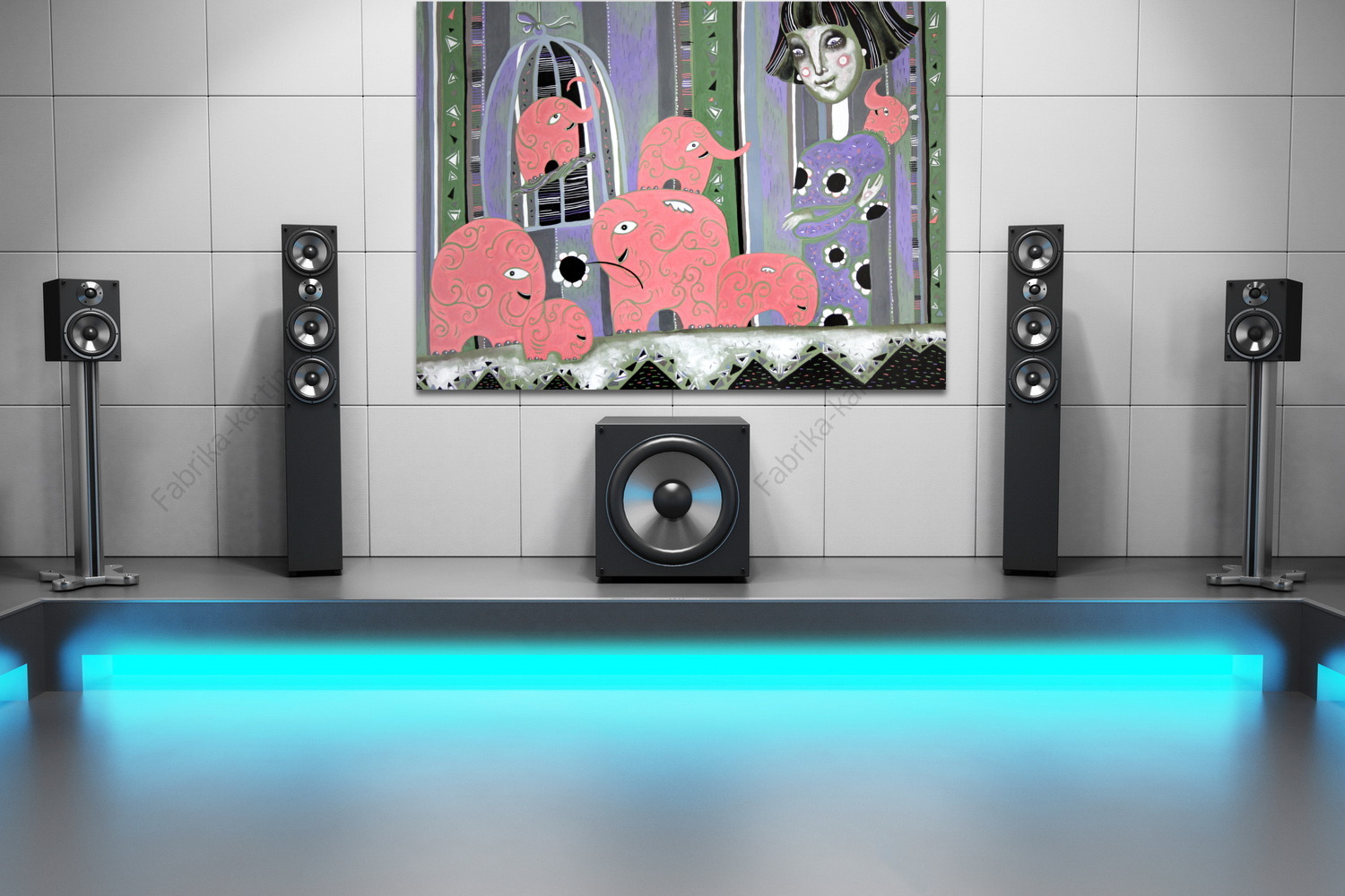 Репродукция картины "Семь розовых слонов."