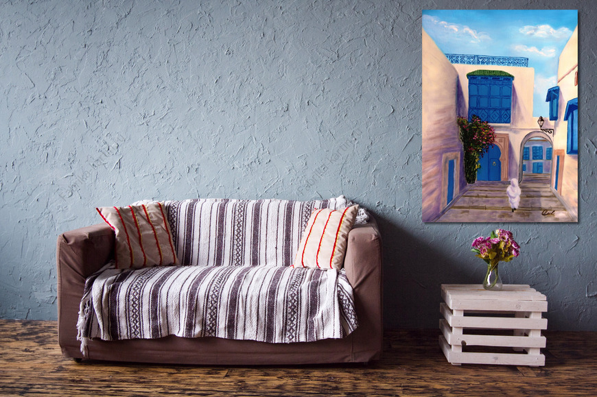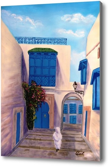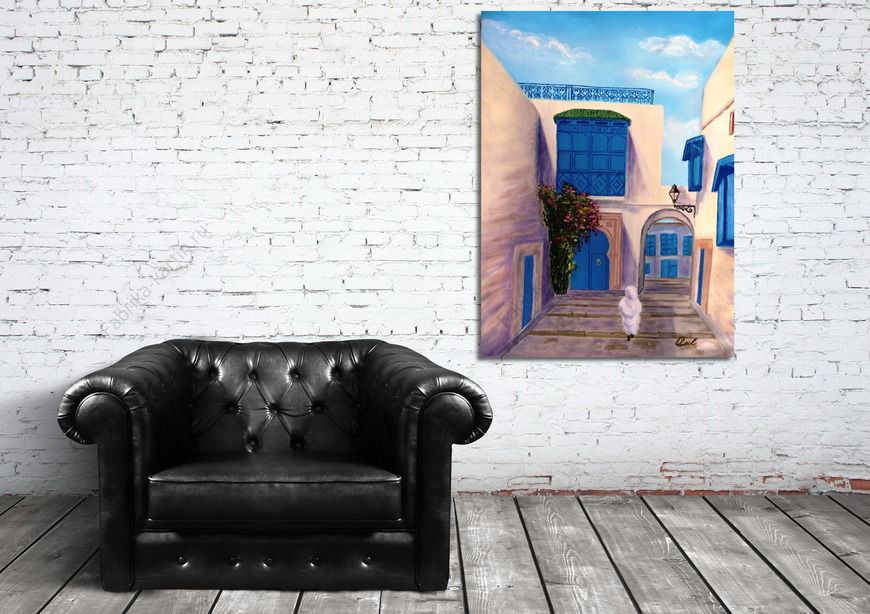 Репродукция картины "Картина маслом. Восточный дворик. Холст 50х35"