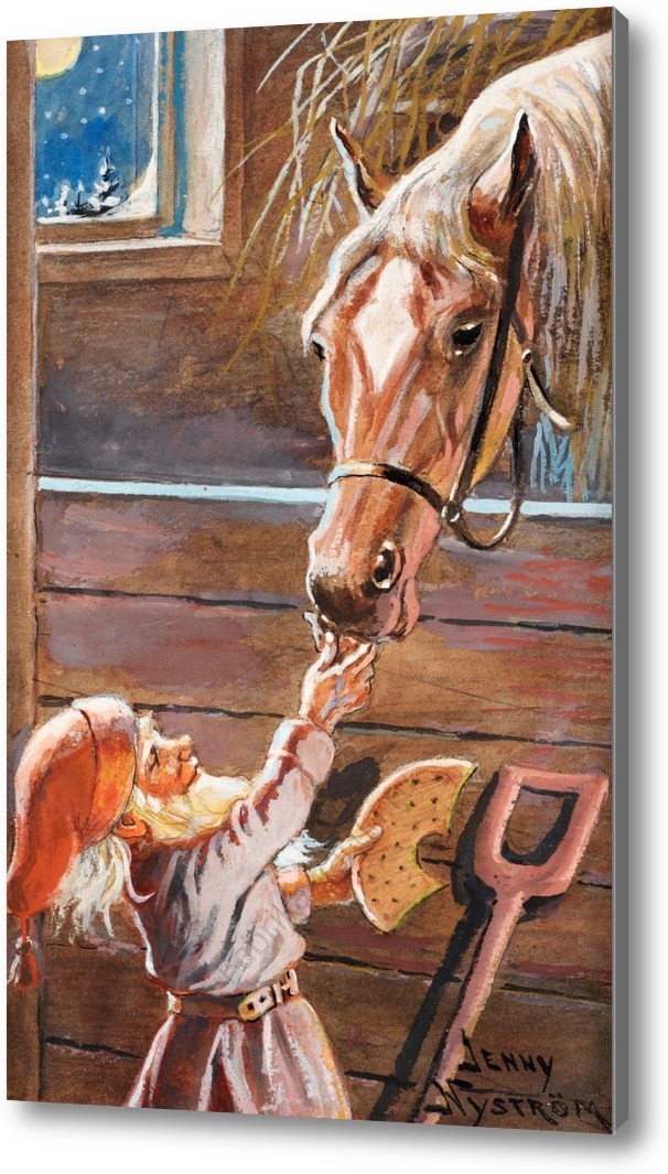 Репродукция картины "Санта-Клаус кормление лошадив конюшне"