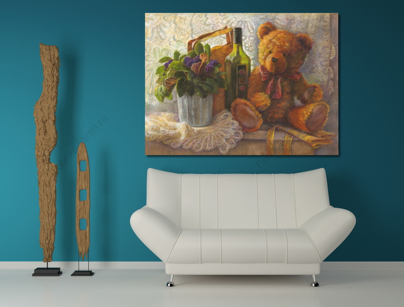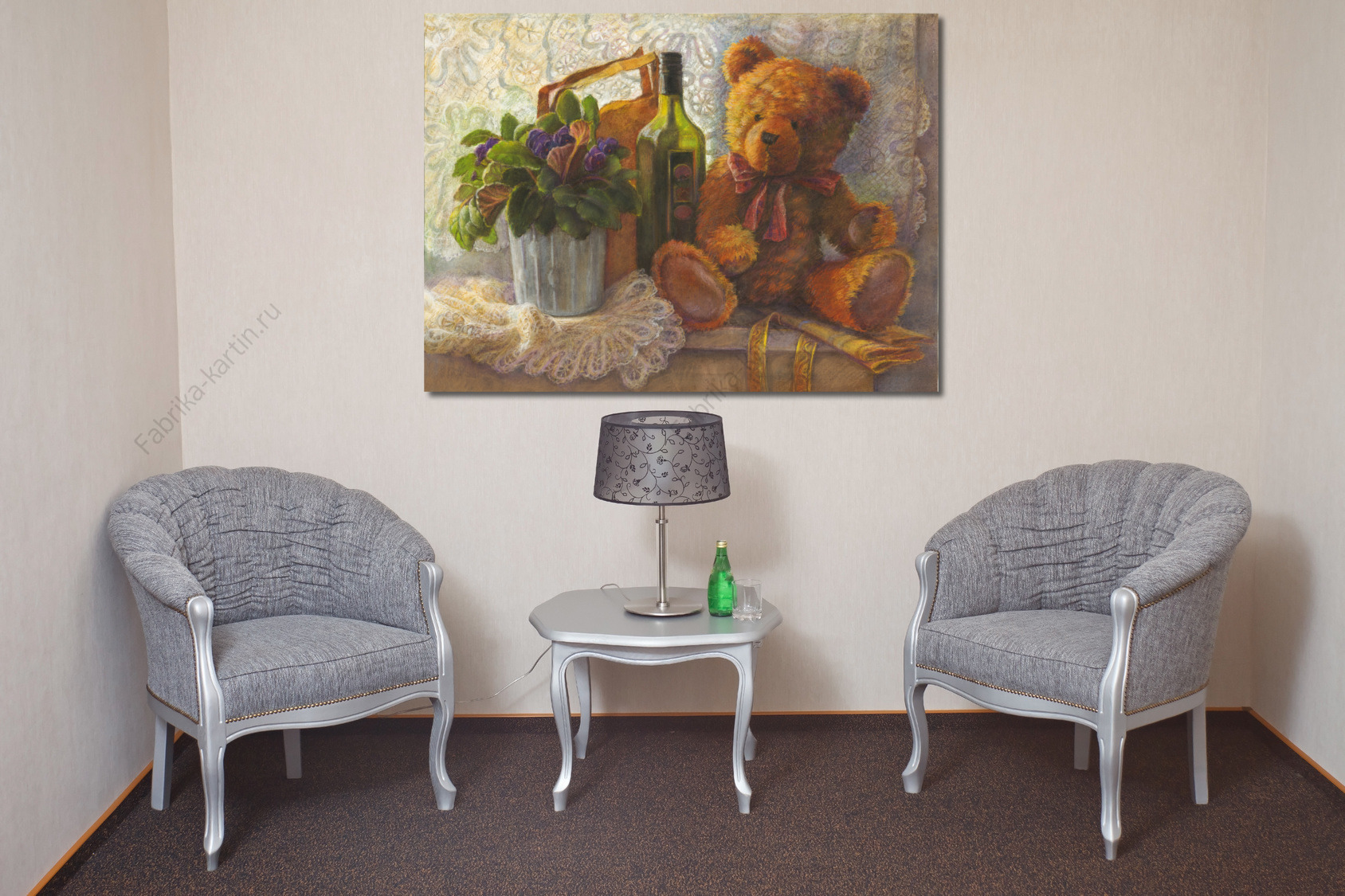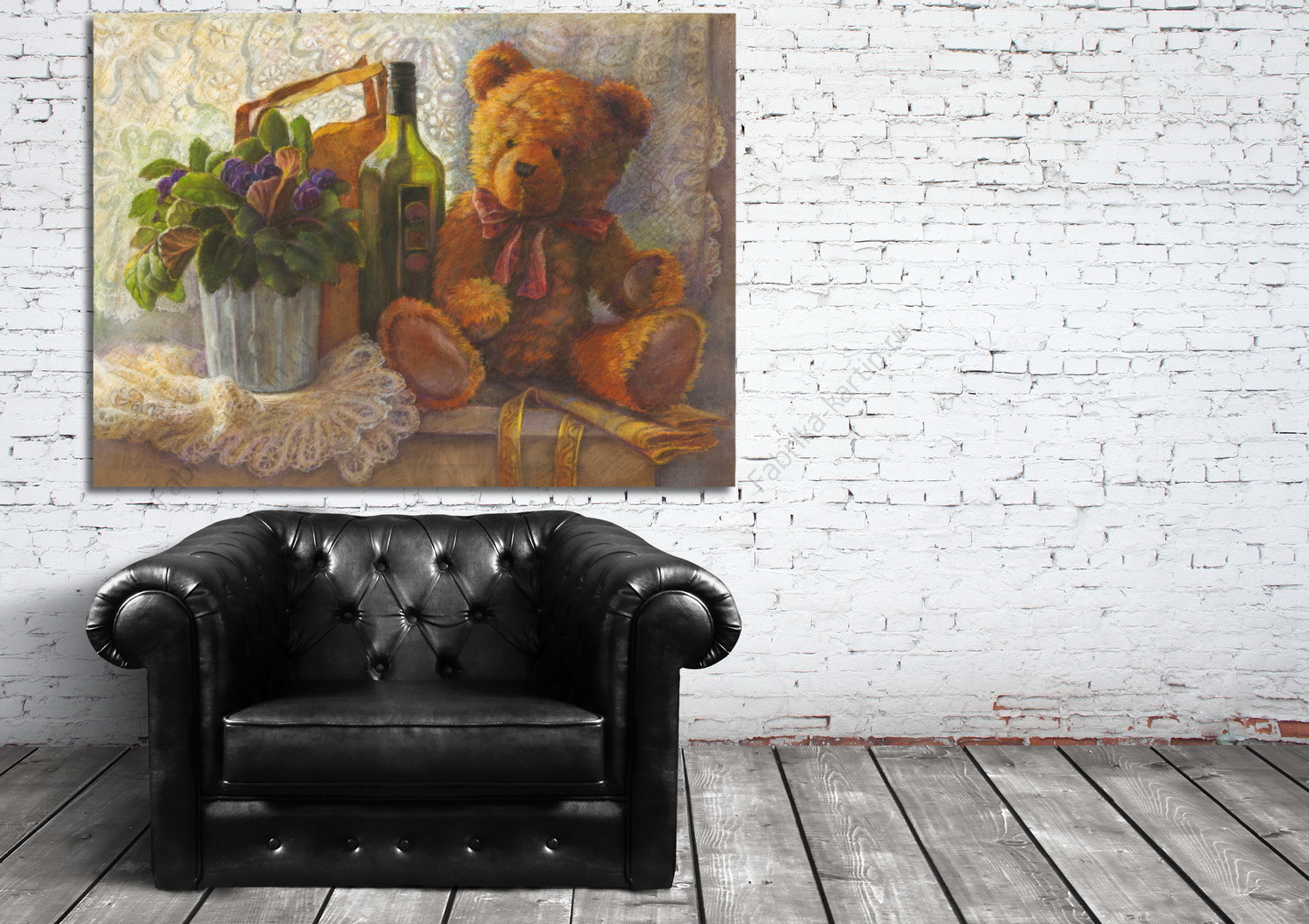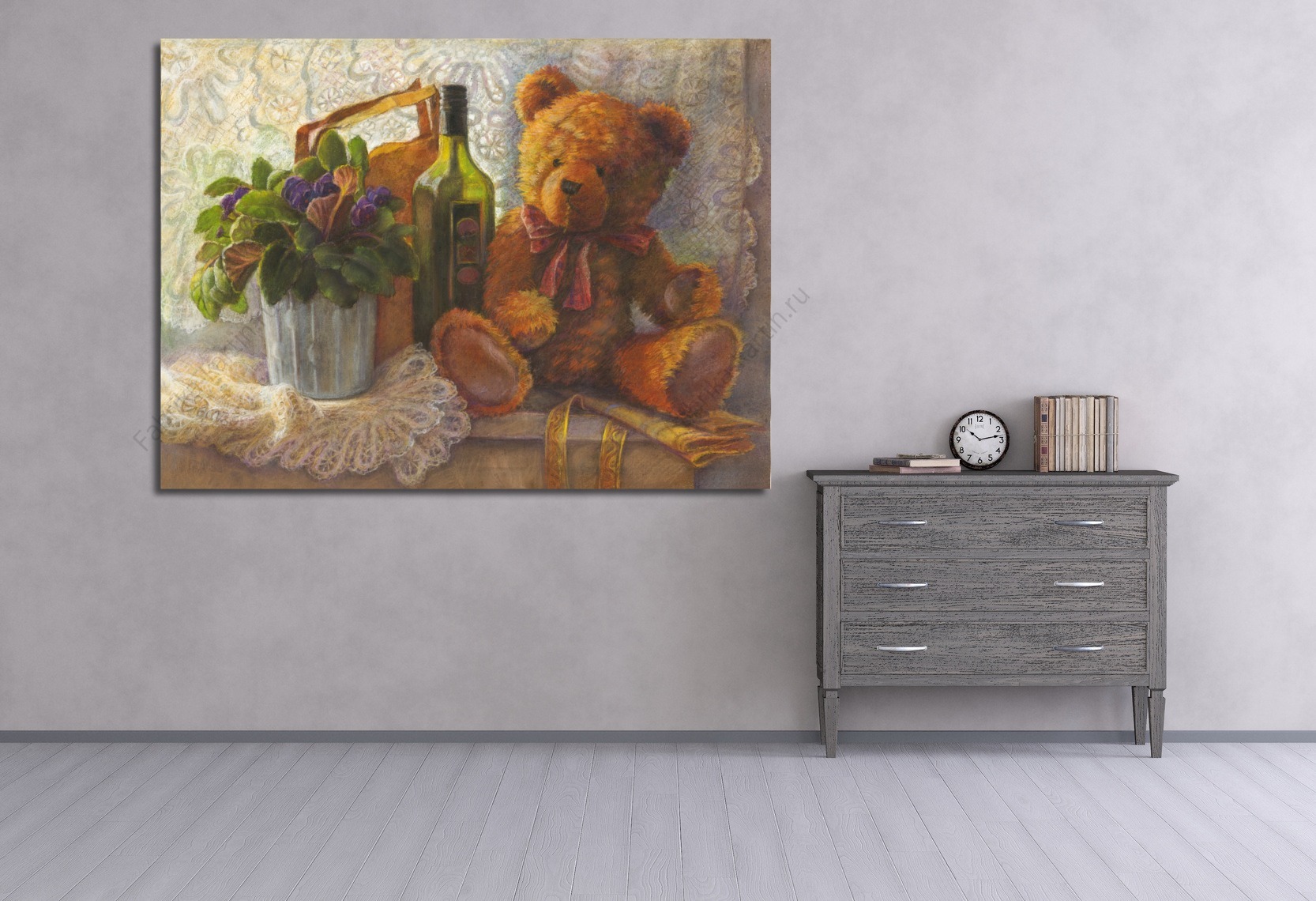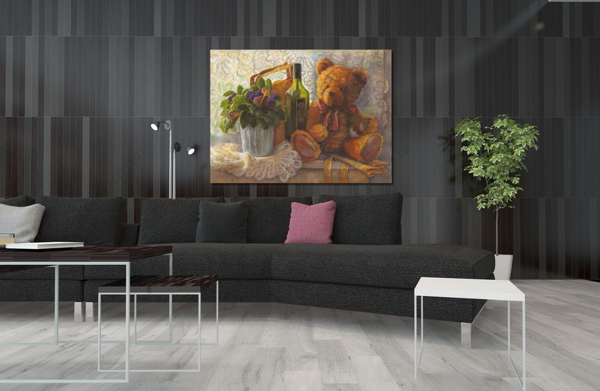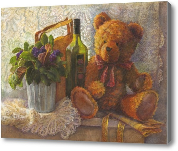 Репродукция картины "Мишка и фиалка на окне"