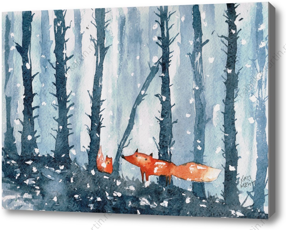 Репродукция картины "Зимние лисы"