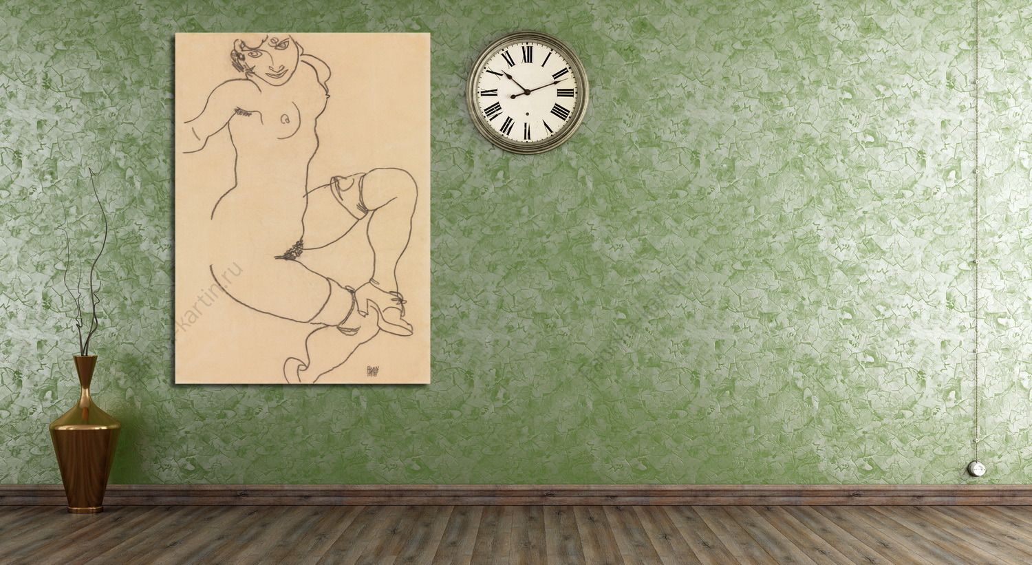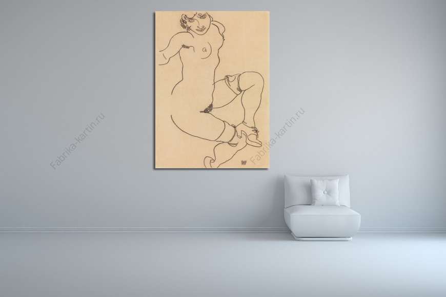 Репродукция картины "Сидящая обнаженная в башмаках и чулках"