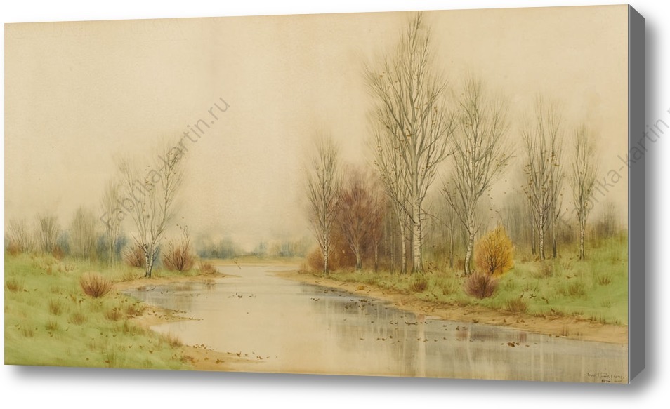 Репродукция картины "Осенний речной пейзаж "