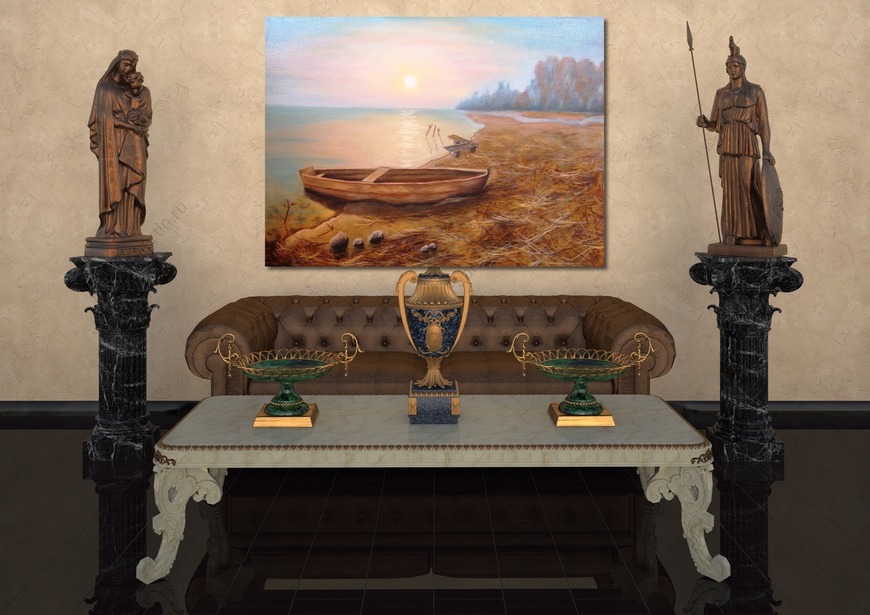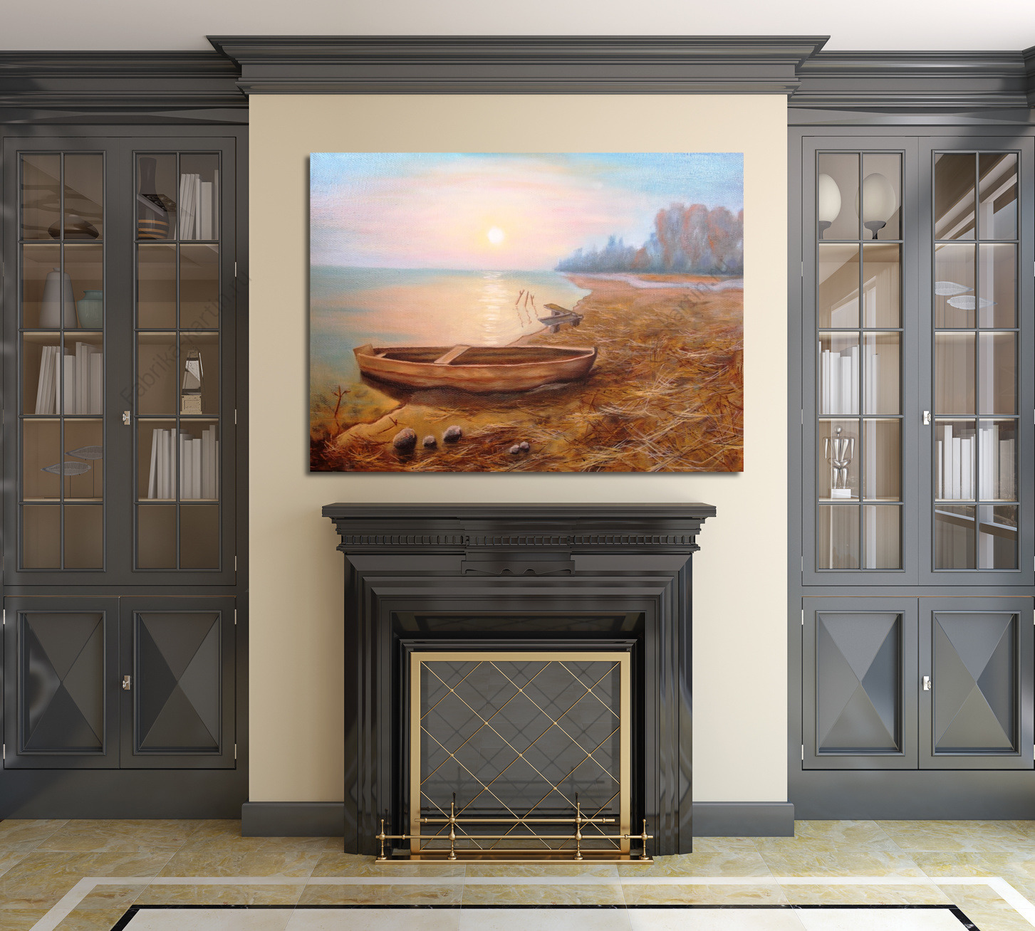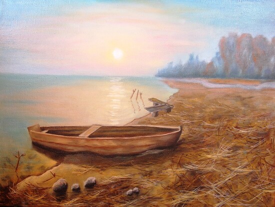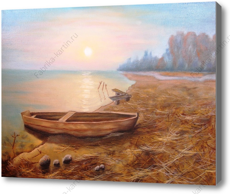 Репродукция картины "Картина маслом. Рассвет на озере. Холст 40х60"