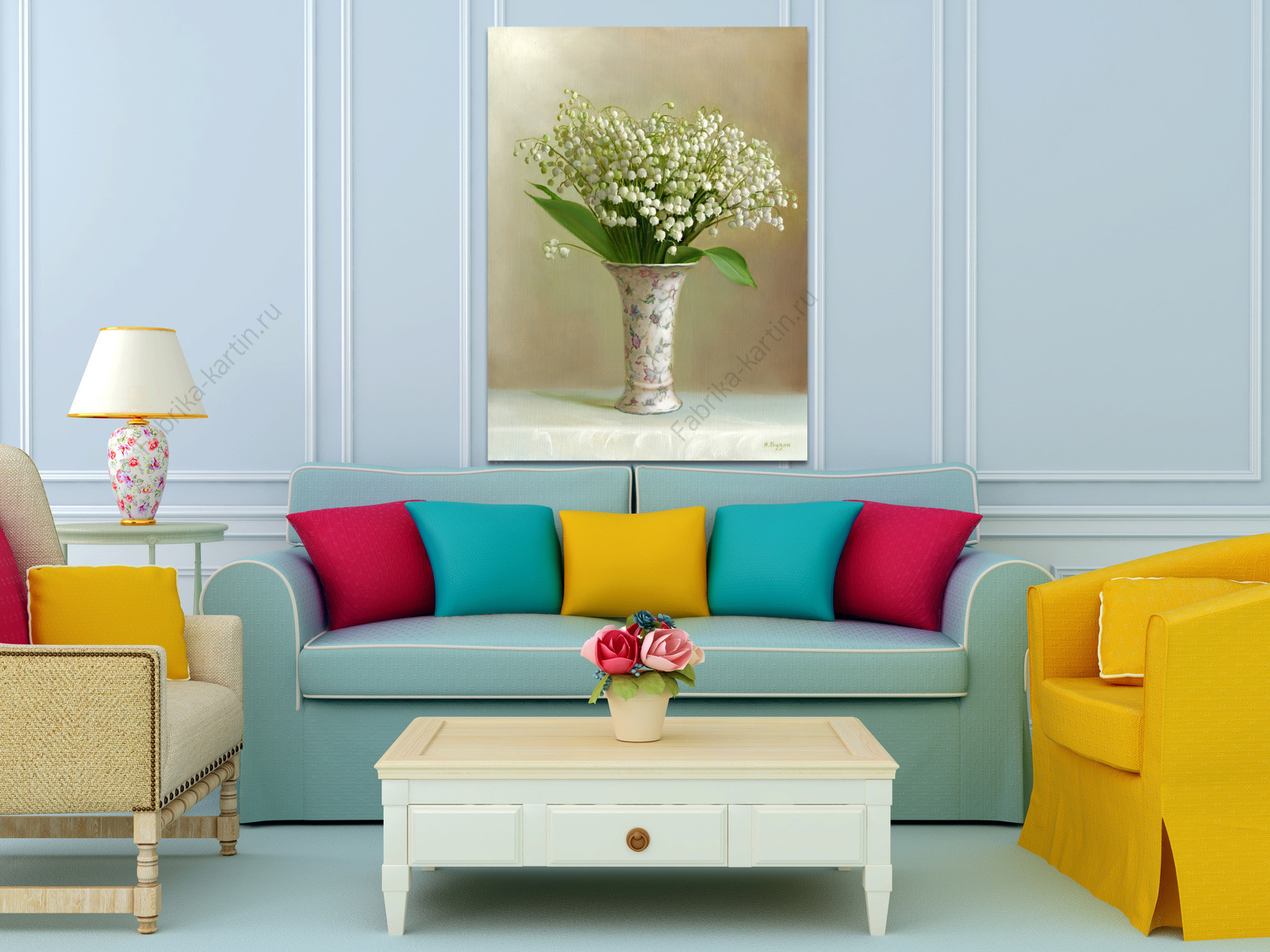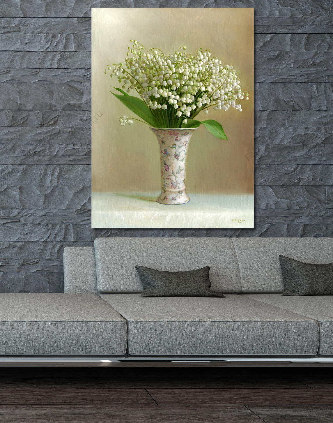 Репродукция картины "Ландыши в светлой вазочке"