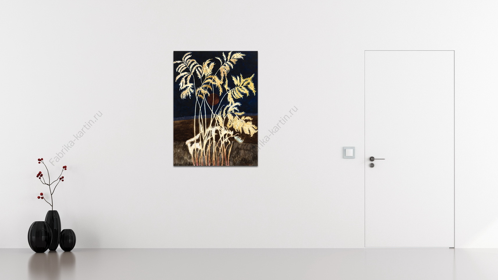 Репродукция картины "Красное солнце, папоротник"