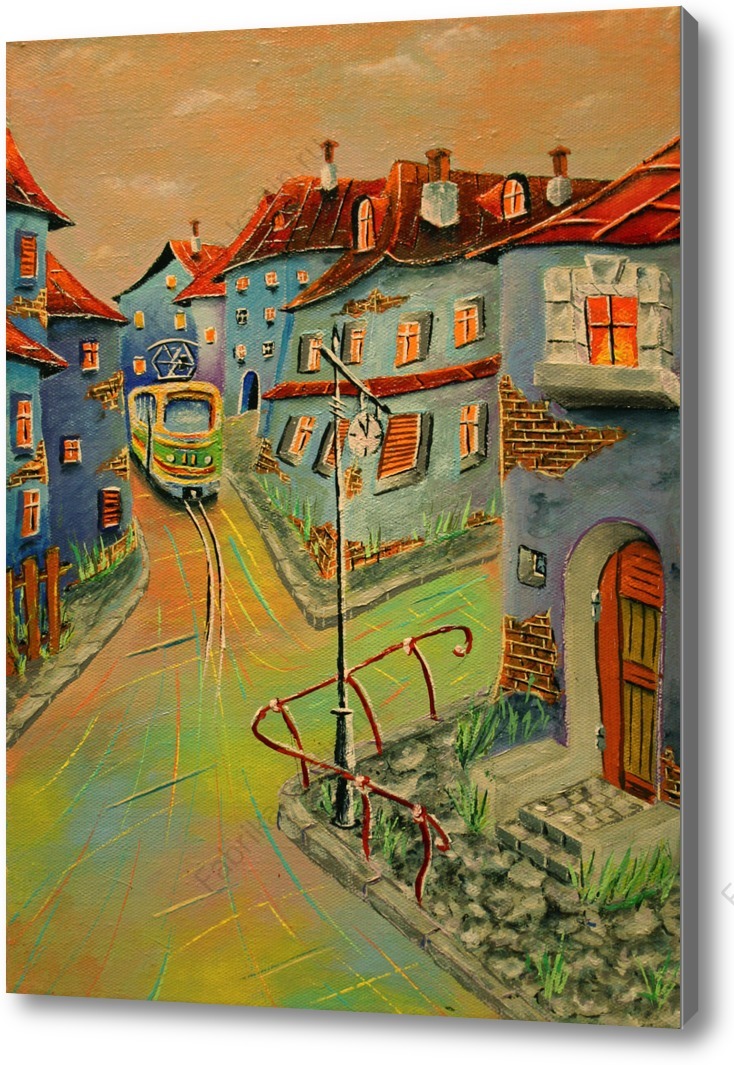 Репродукция картины "Триптих. Городок. Желто-зеленый трамвай."