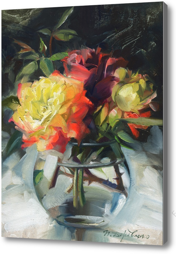 Репродукция картины "Яркие розы"