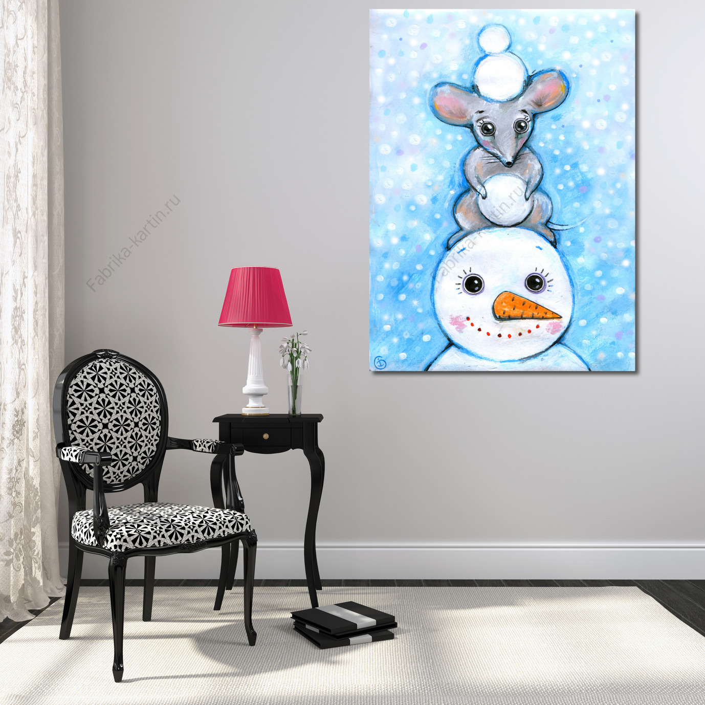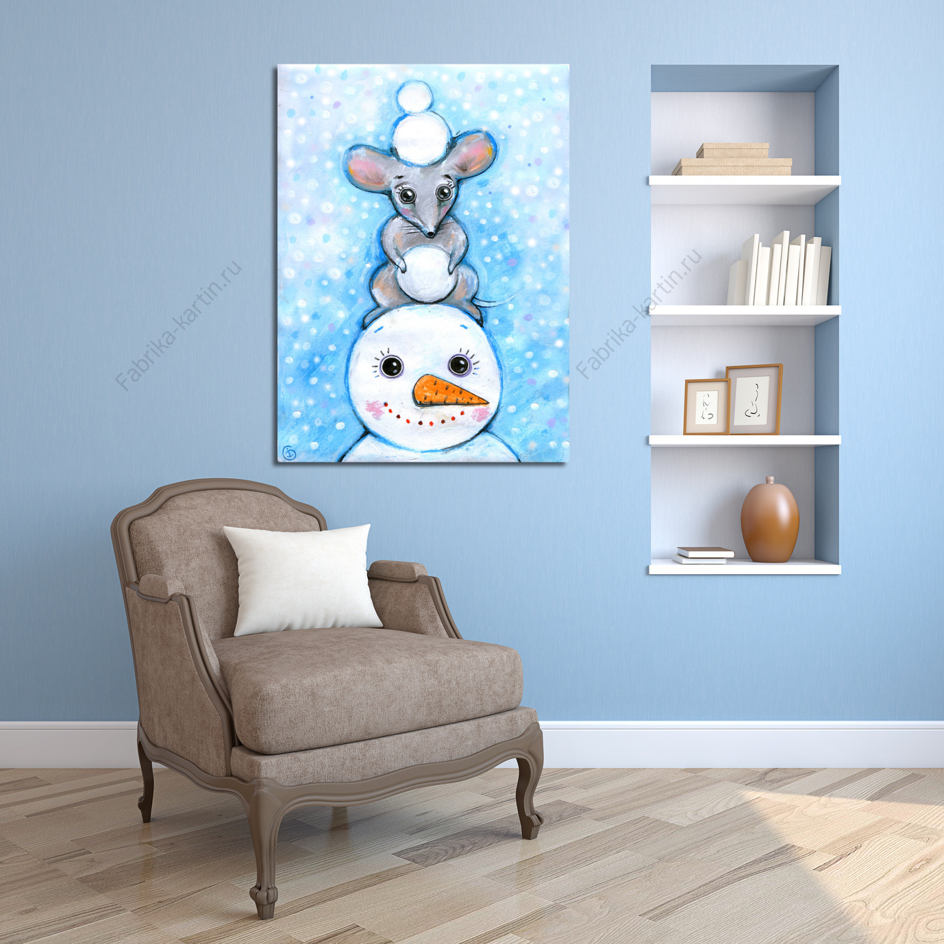 Репродукция картины "Мышка и снеговик"