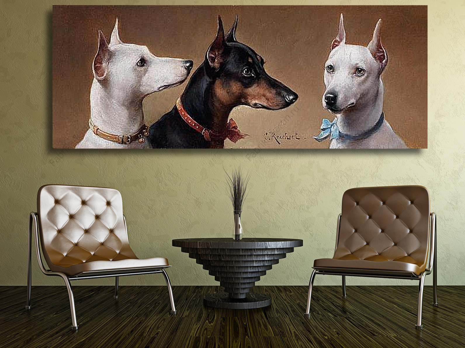 Репродукция картины "Три добермана"