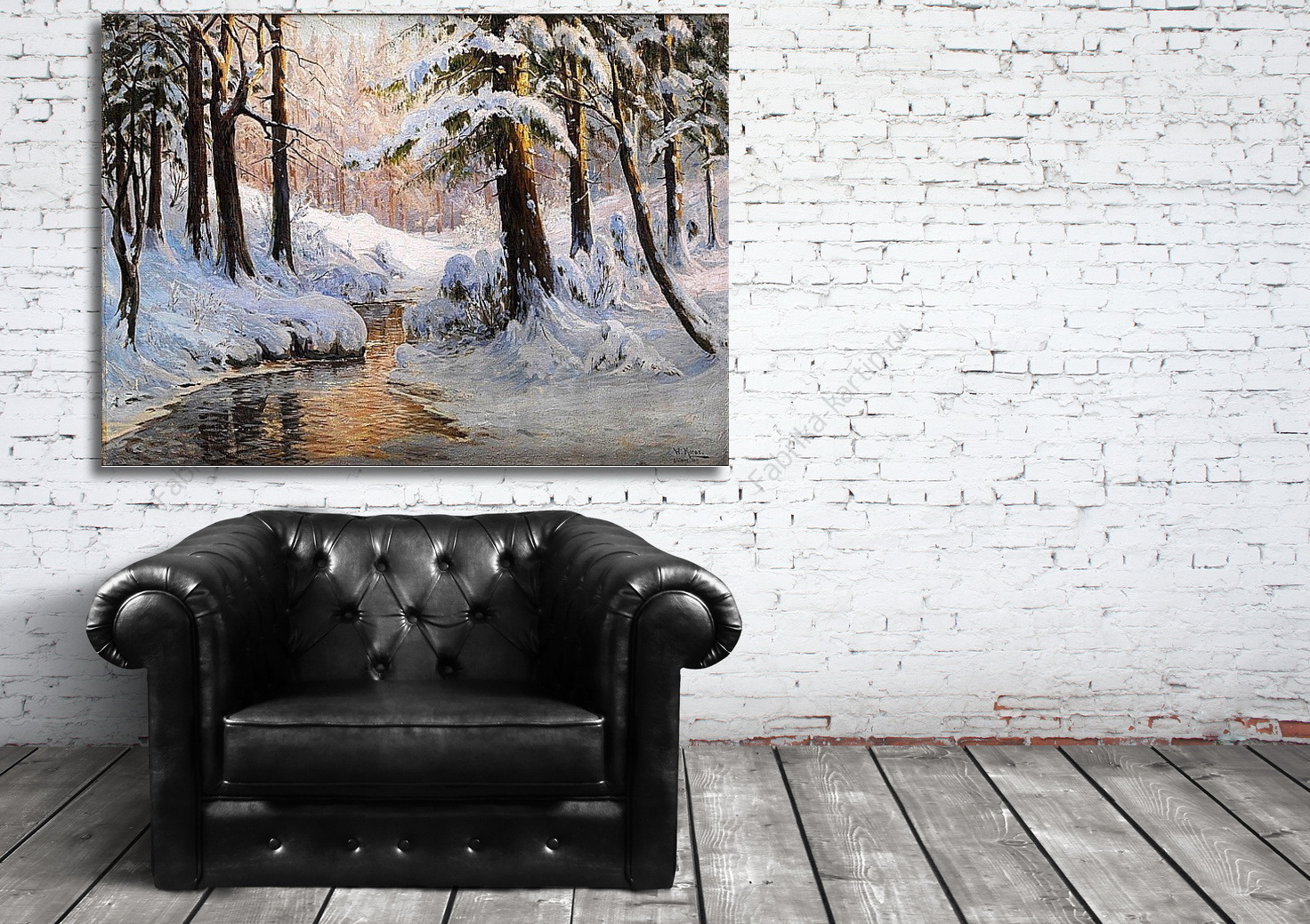 Репродукция картины "Заснеженный лесной ландшафт"