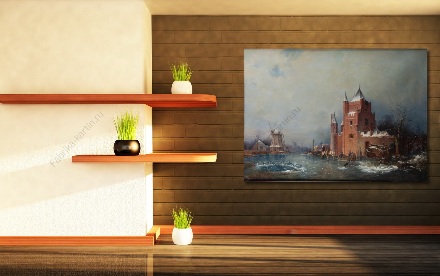 Репродукция картины "Зимняя сцена с фигцрами на замерзшем озере"
