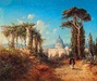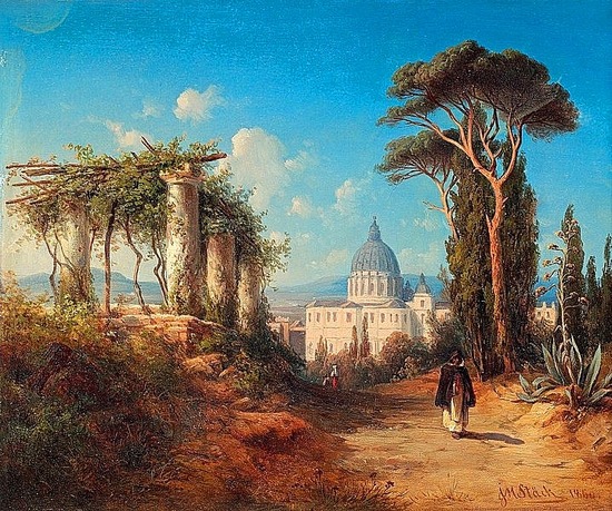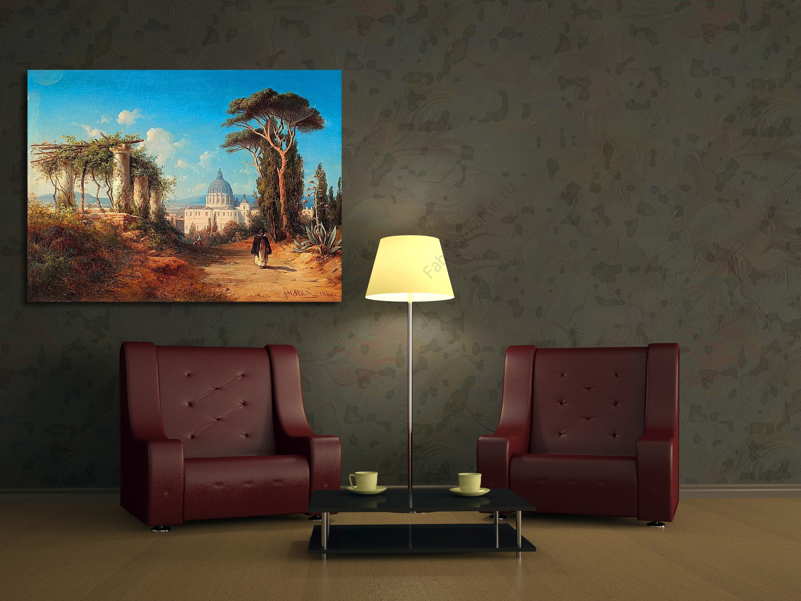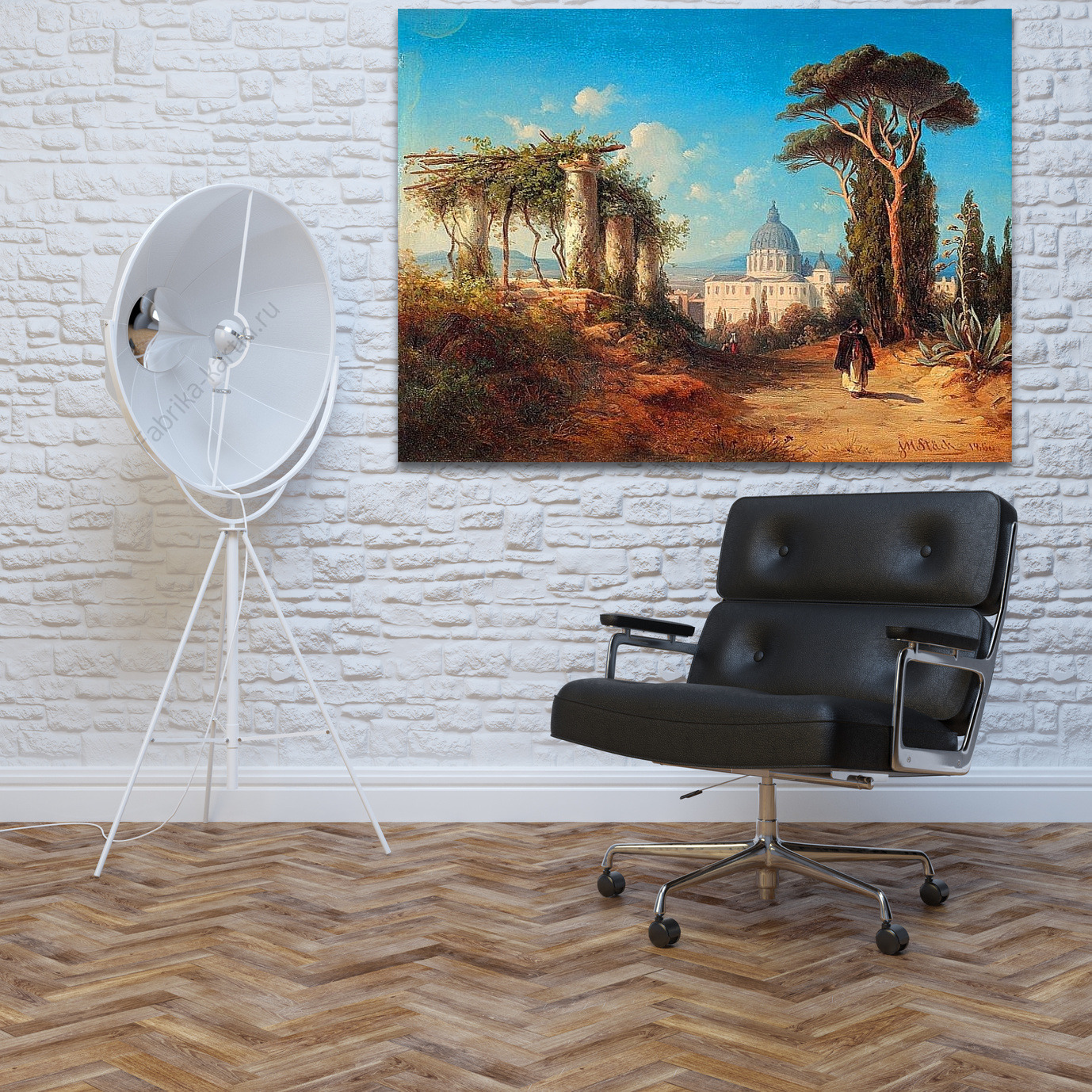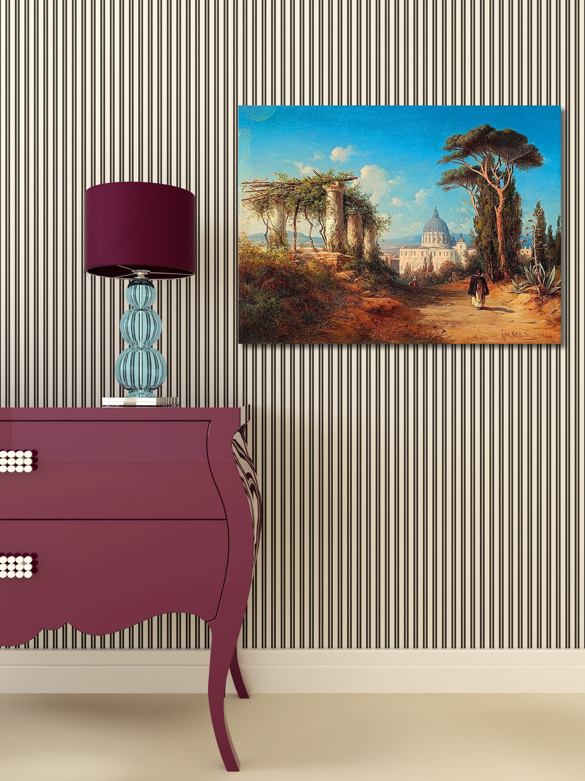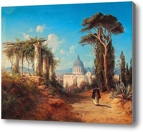 Репродукция картины "Прогулка фигуры на окраине Рима с базиликой Святого Петра на зад"