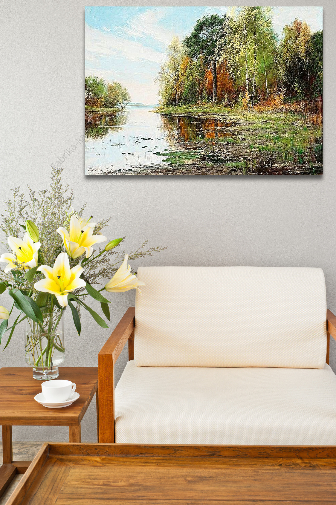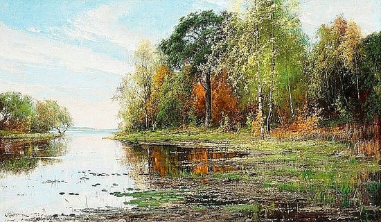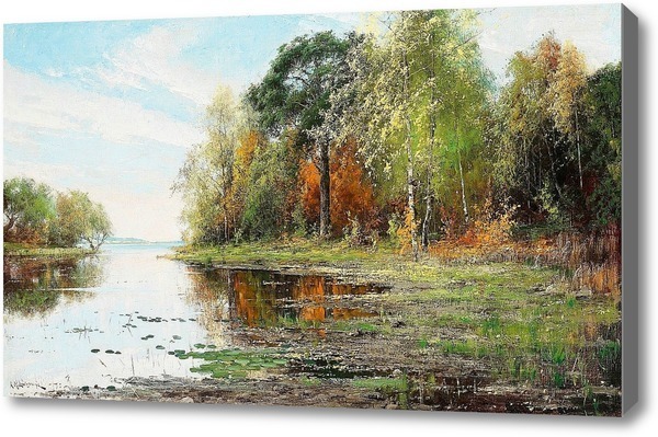 Репродукция картины "Озеро.Пейзаж осенью"