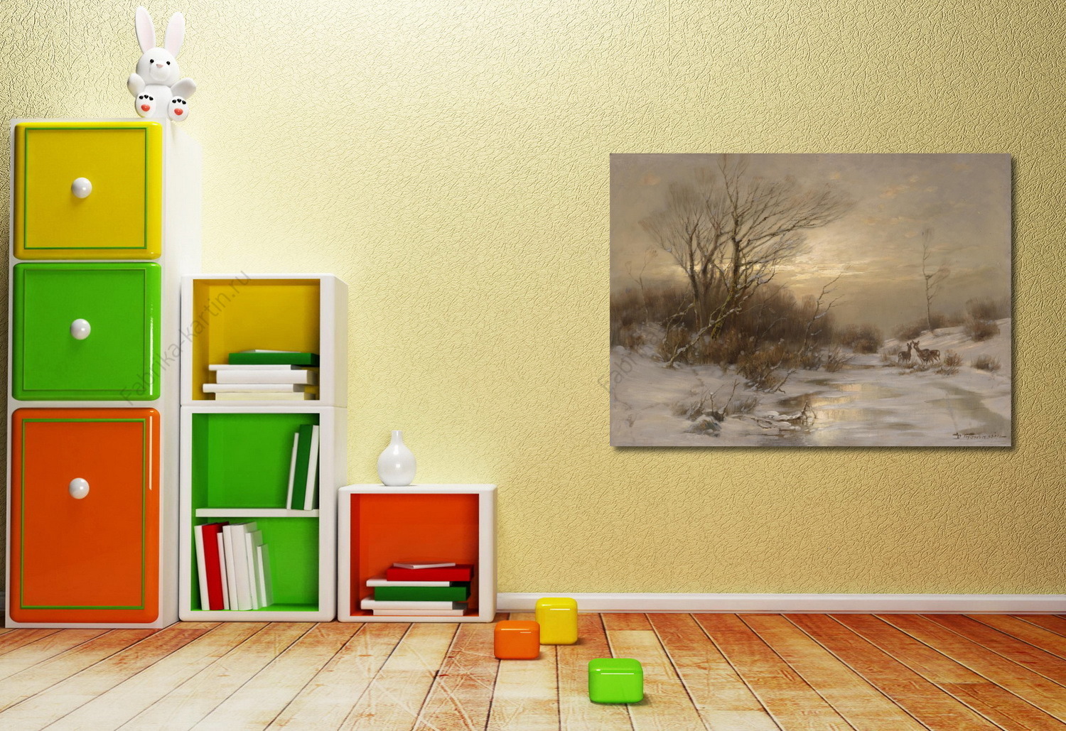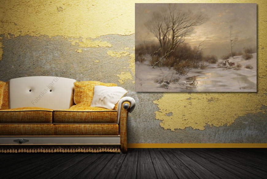 Репродукция картины "Олени в зимний пейзаж"