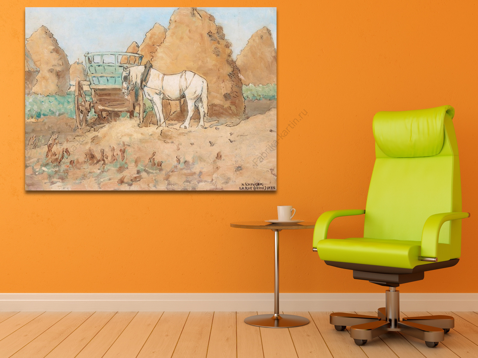 Репродукция картины "Белая лошадь и стога сена, сцена из Ла Ру,недалеко от Парижа"