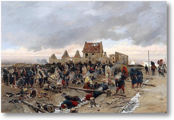Репродукция картины "Бивуак у Бурже после сражения 21 декабря 1870 года"