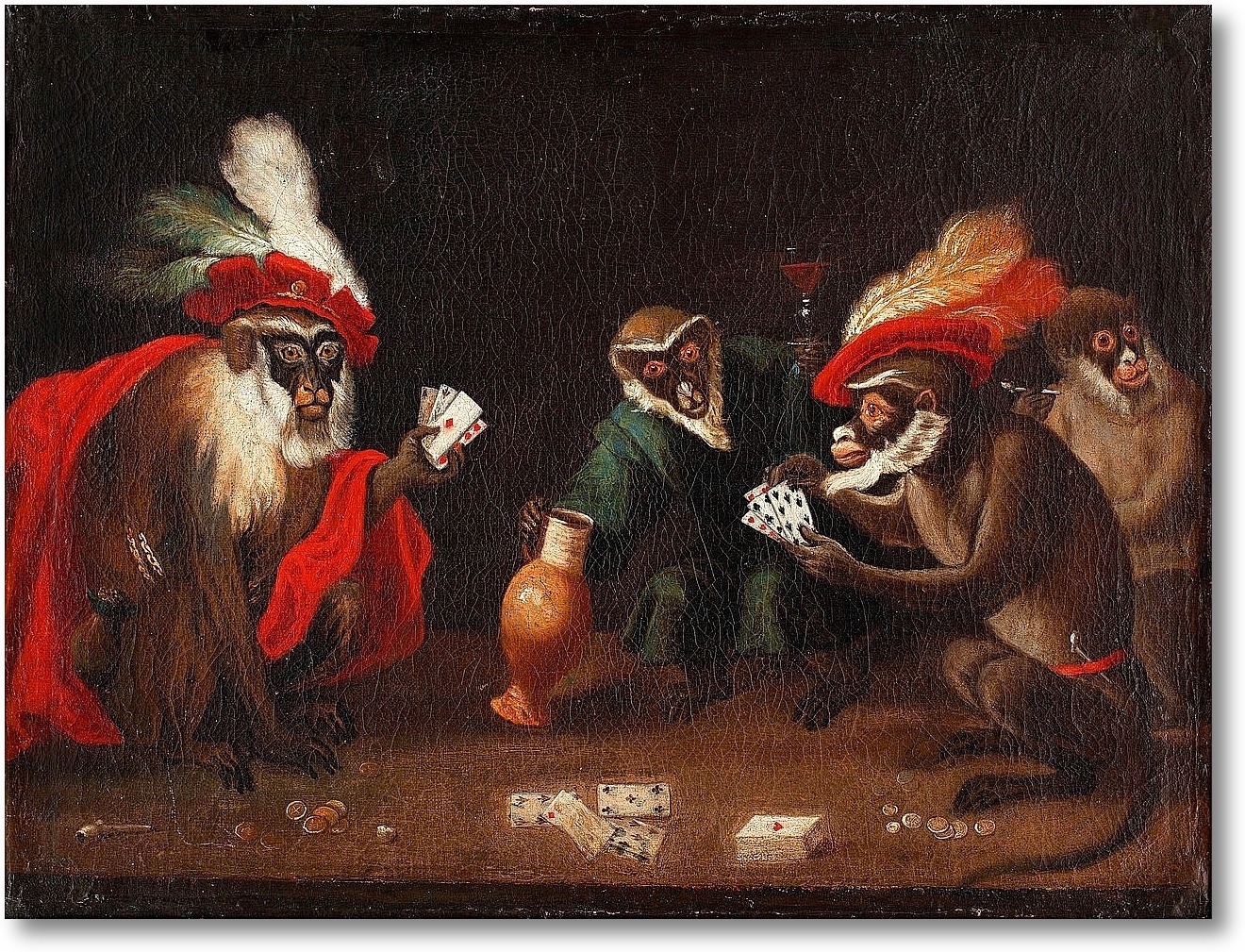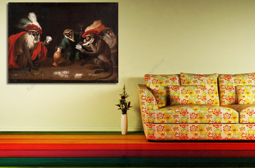 Репродукция картины "Обезьяны играют в карты"
