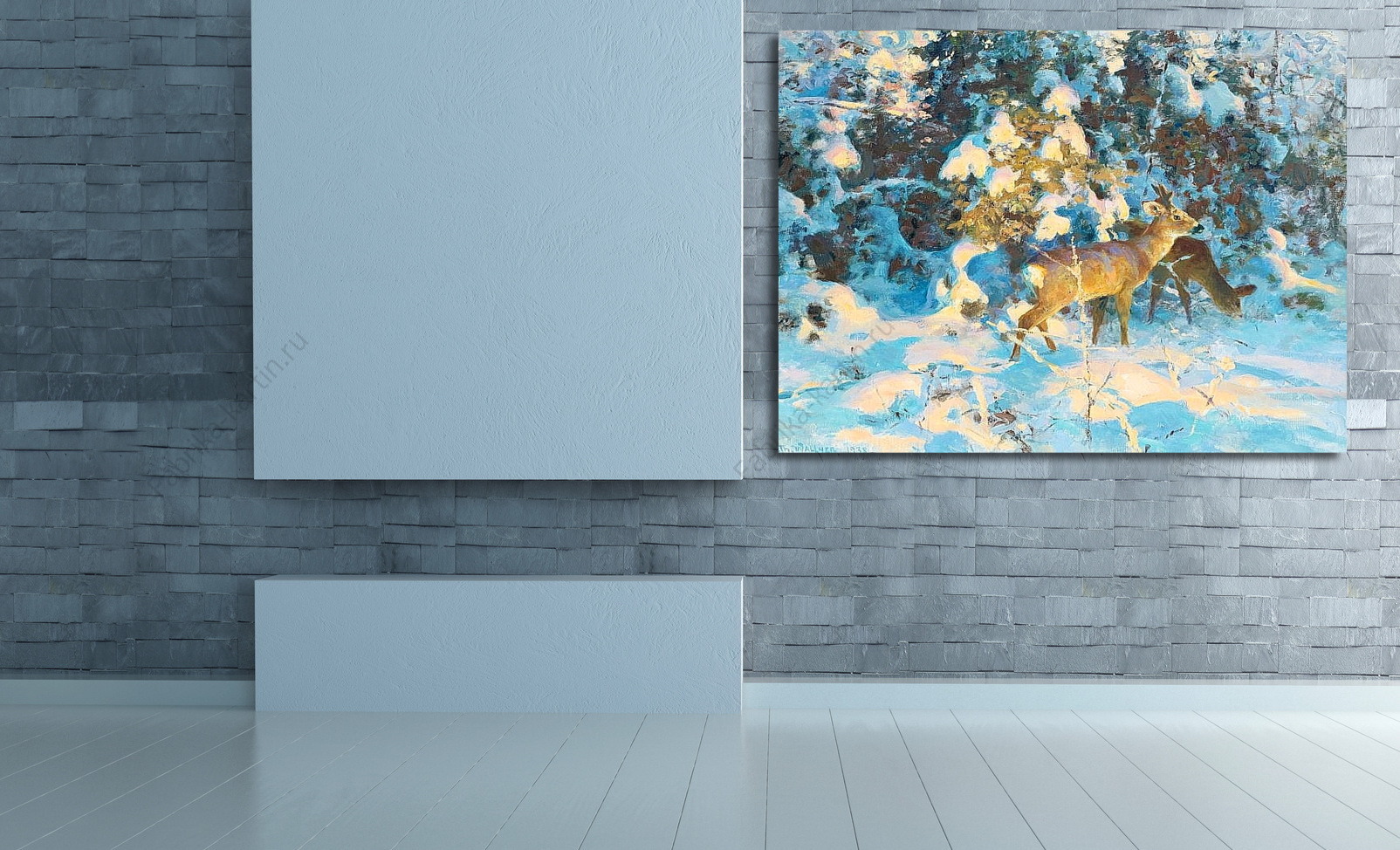 Репродукция картины "Оленята в зимнем лесу"