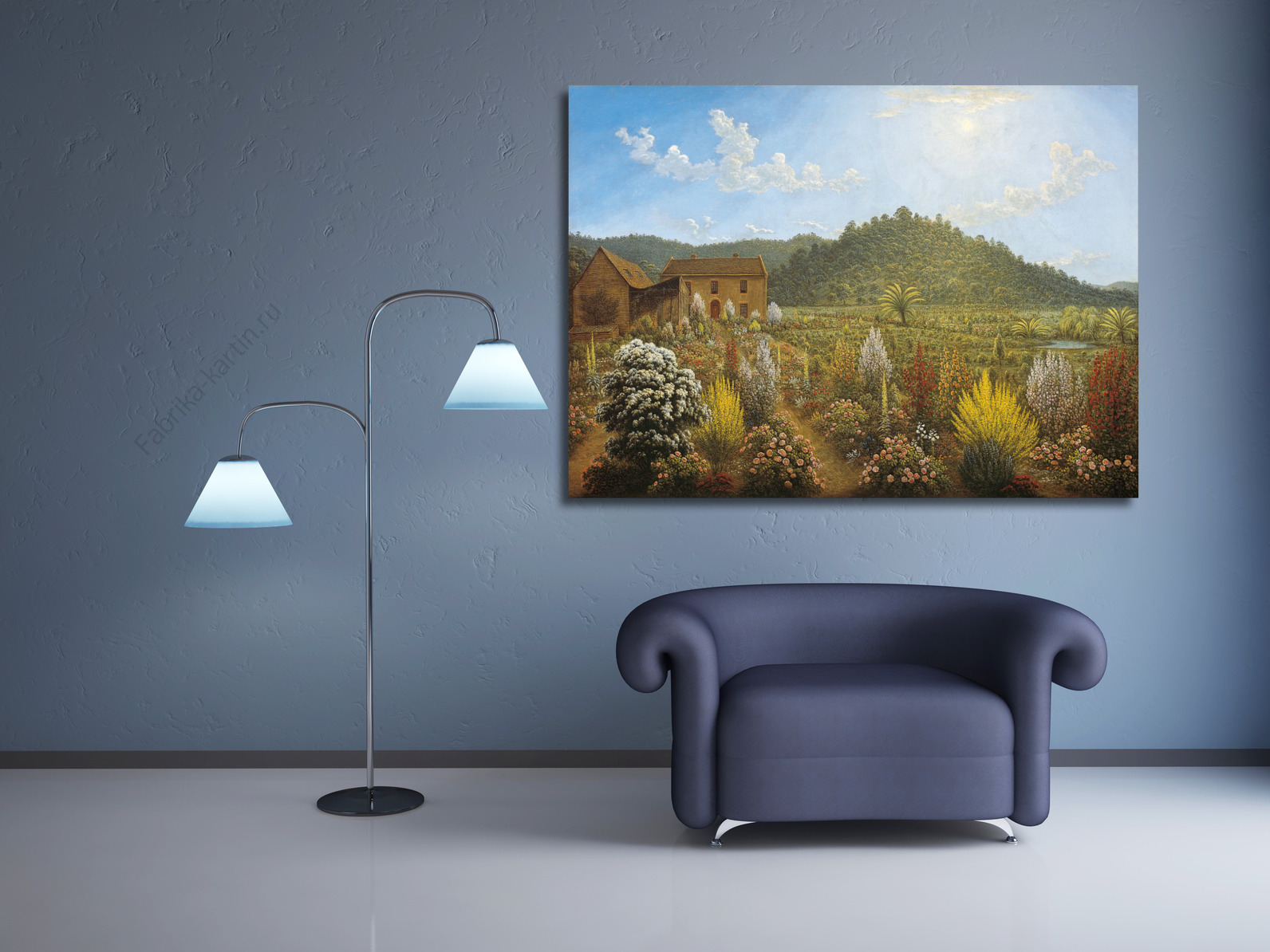 Репродукция картины "Вид на дом художника и сад на Земле Вандименовой,равнина Миллс"