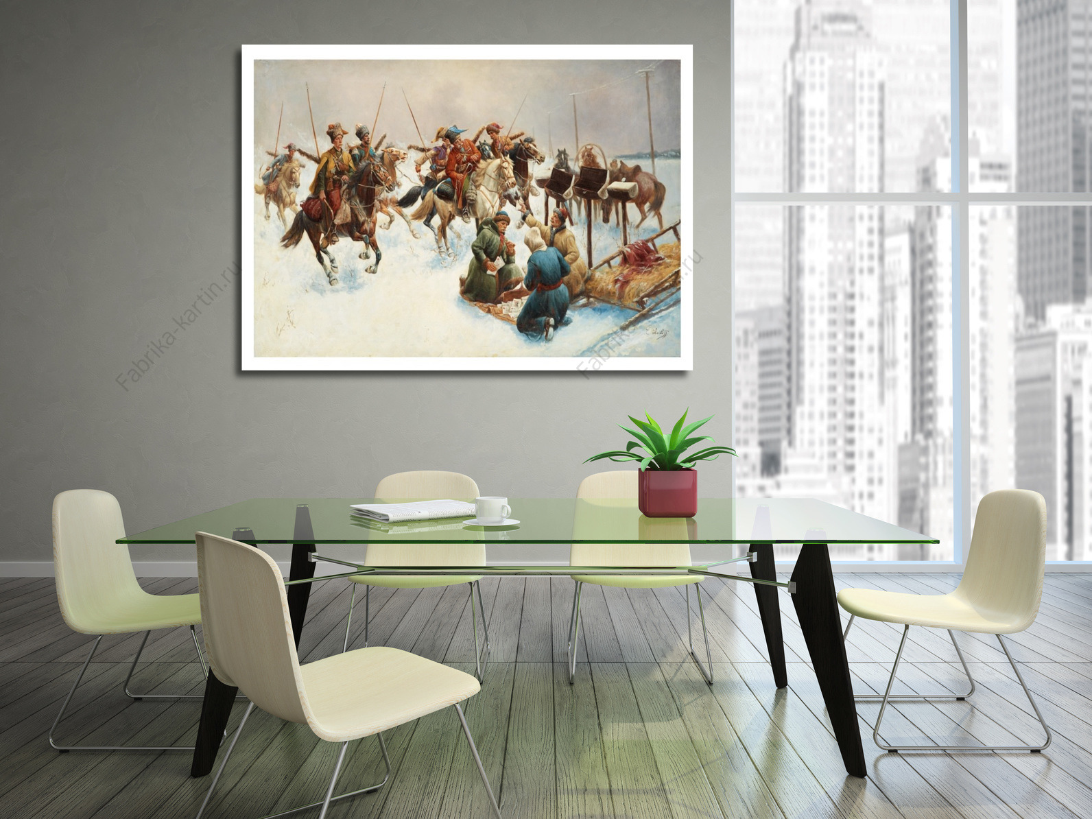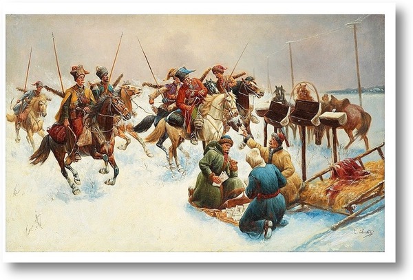 Репродукция картины "Казаки в Винтере ,пейзаж"