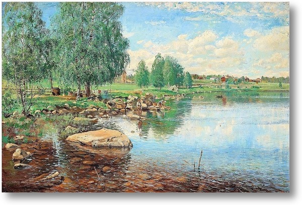 Репродукция картины "Пейзаж с мальчиком рыбаком"