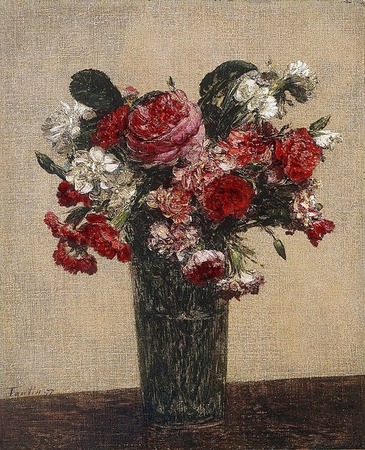 Репродукция картины "Натюрморт розами и астрами в стекле"