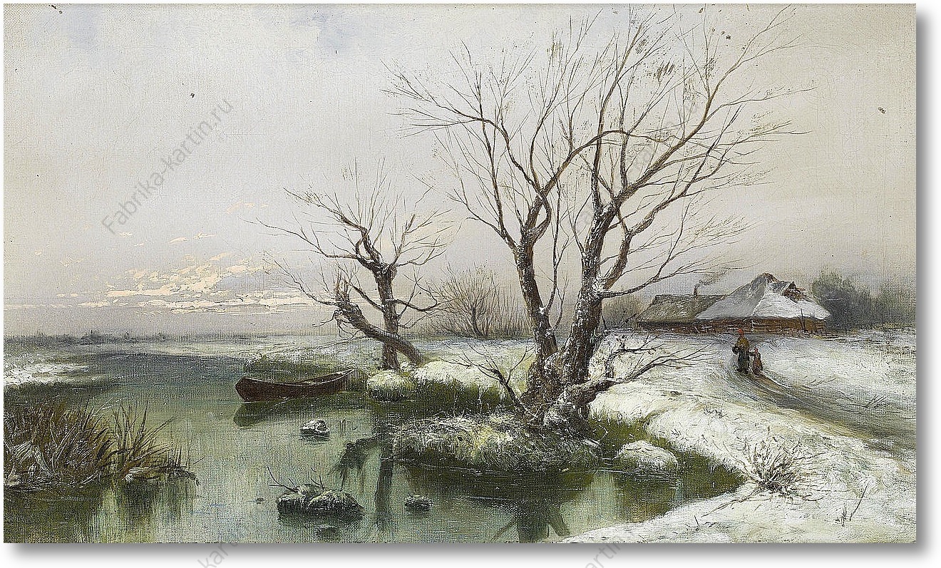 Репродукция картины "Снежные берега реки"