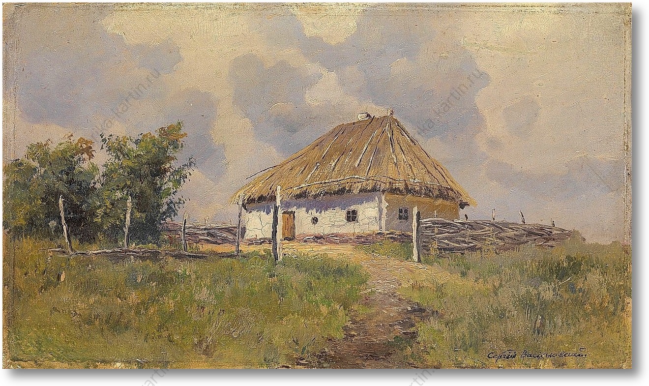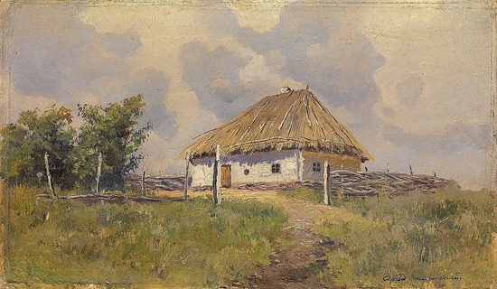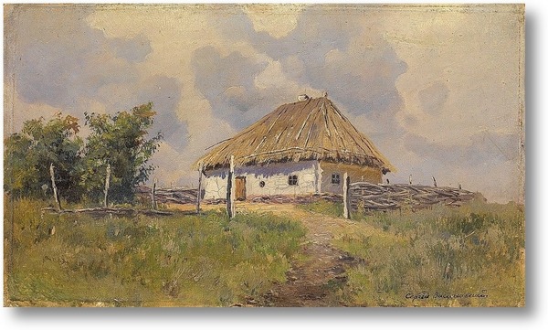 Репродукция картины "Украинская хата на холме"