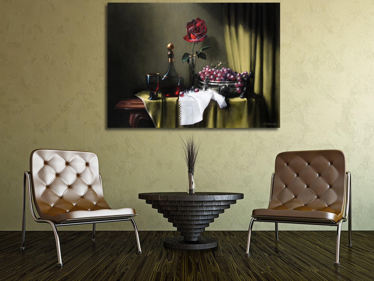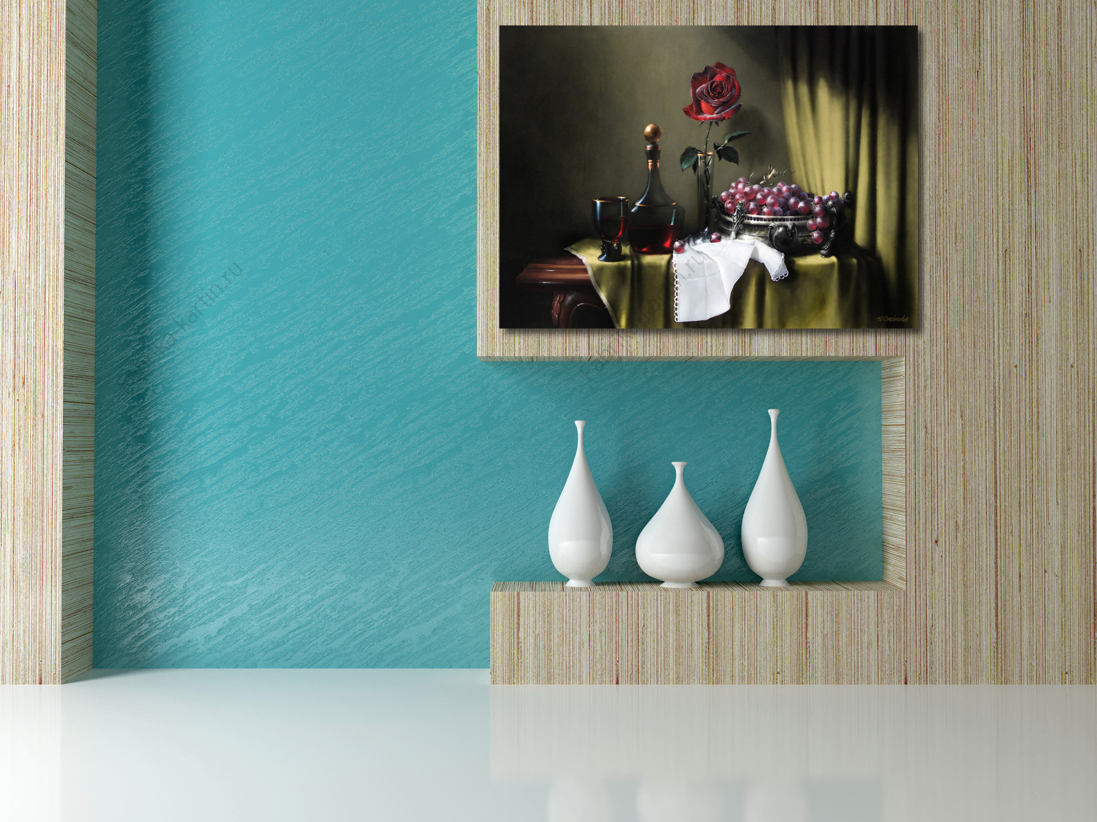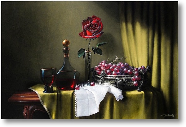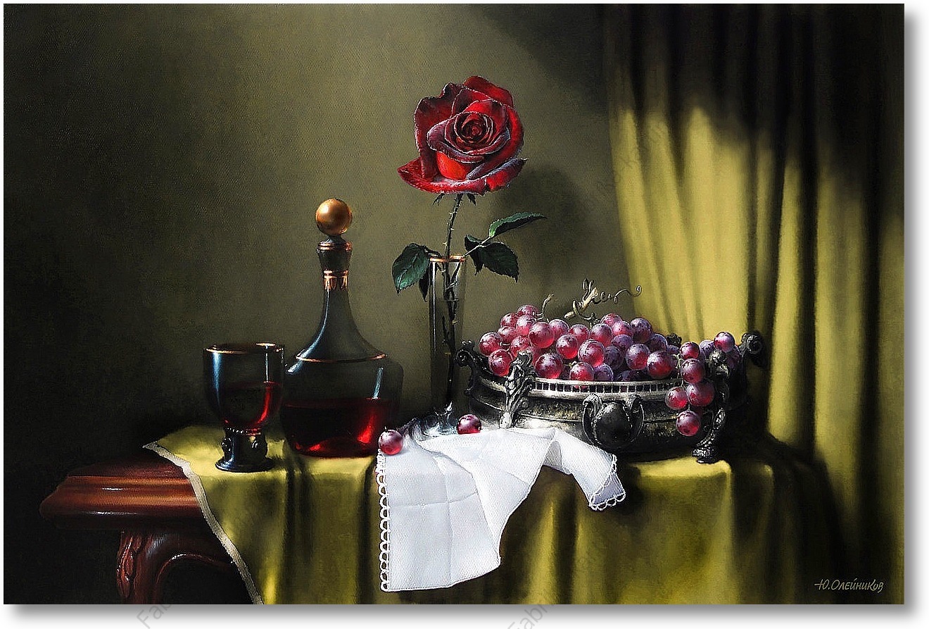 Репродукция картины "Бархатная роза, вино и виноград"