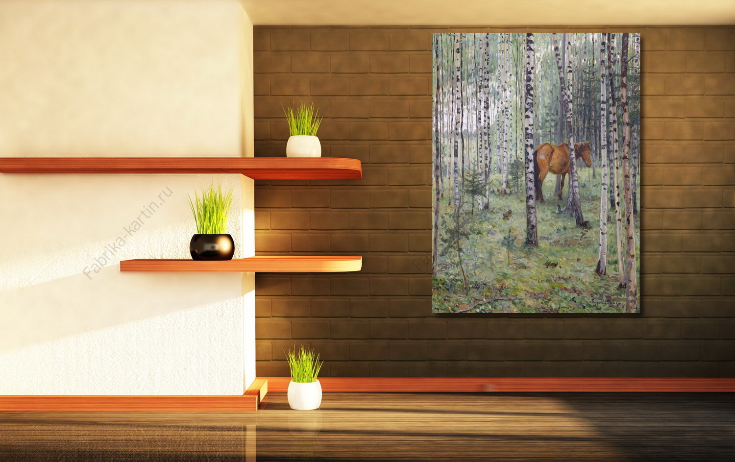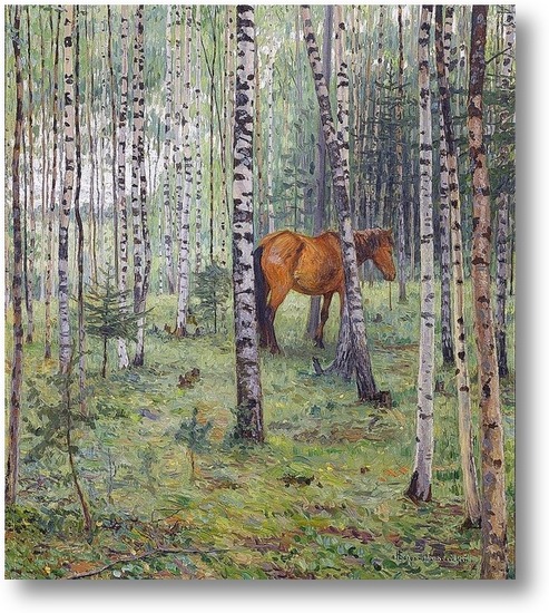 Репродукция картины "Конь в берёзовом лесу"