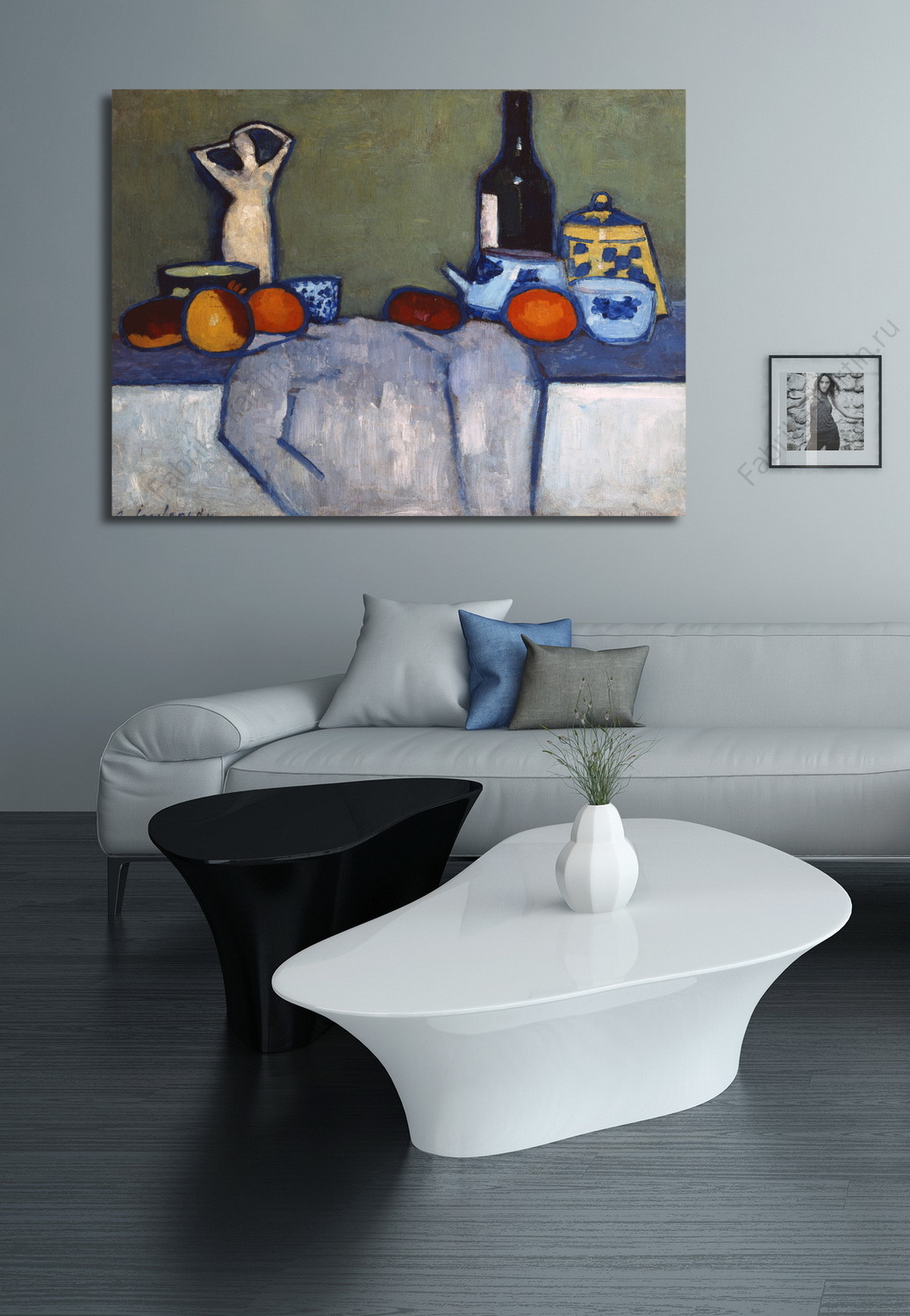 Репродукция картины "Натюрморт с фруктами и фигурами"