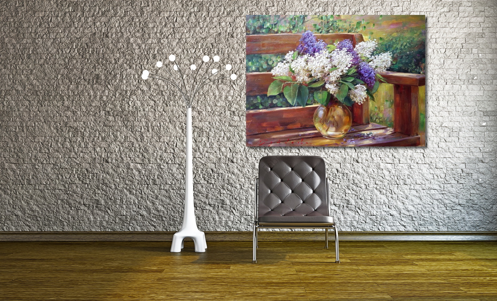 Репродукция картины "Сирень на скамье"