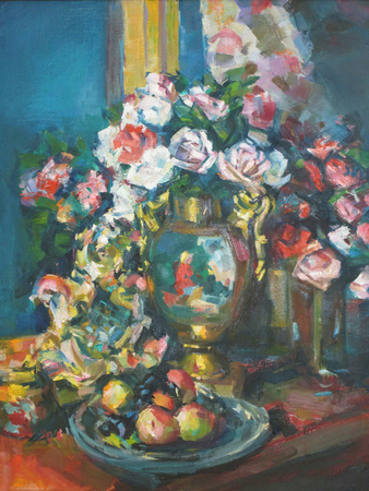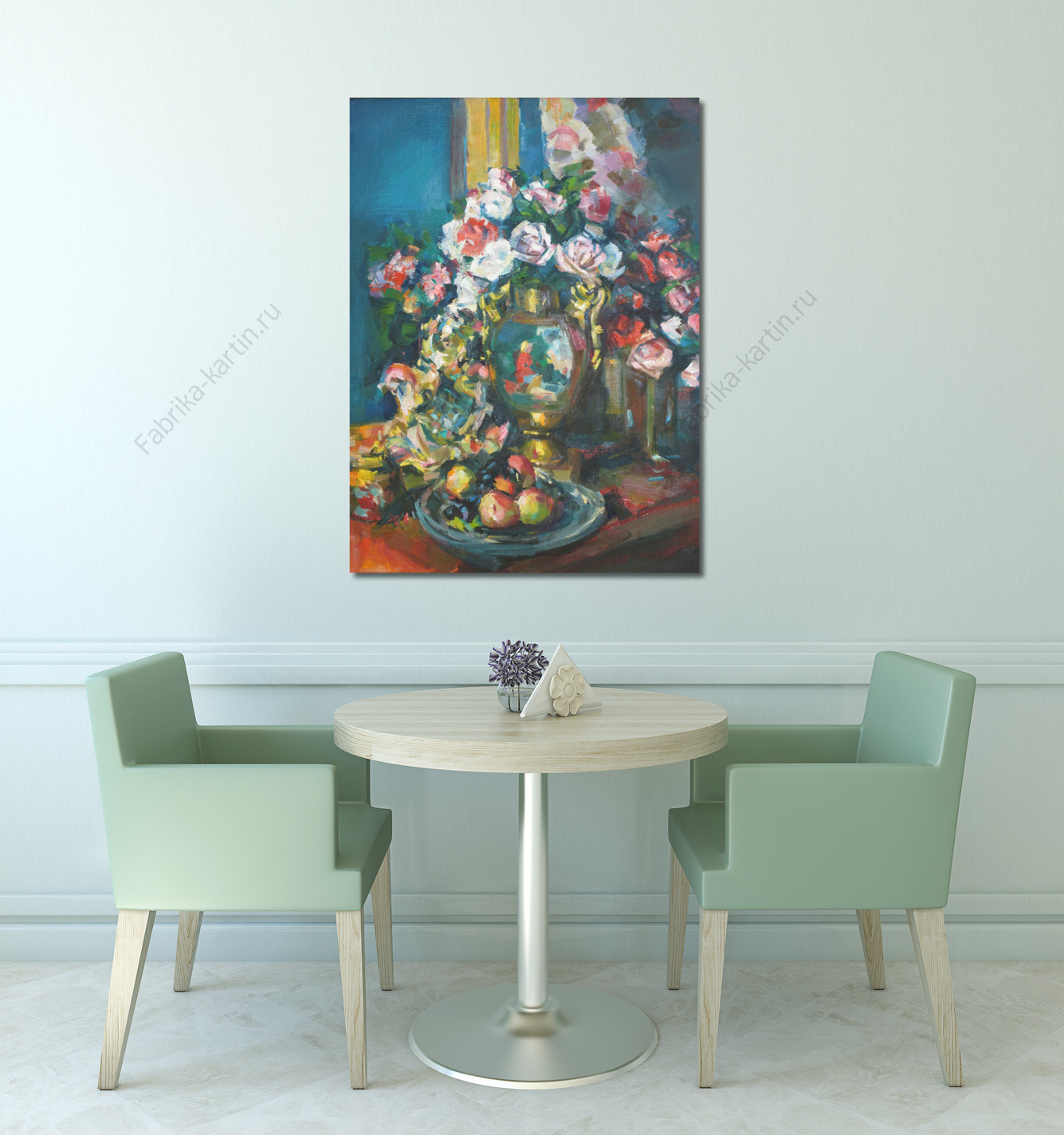 Репродукция картины "Коровин.К.Натюрморт с розыми.1916 (авторская копия)"