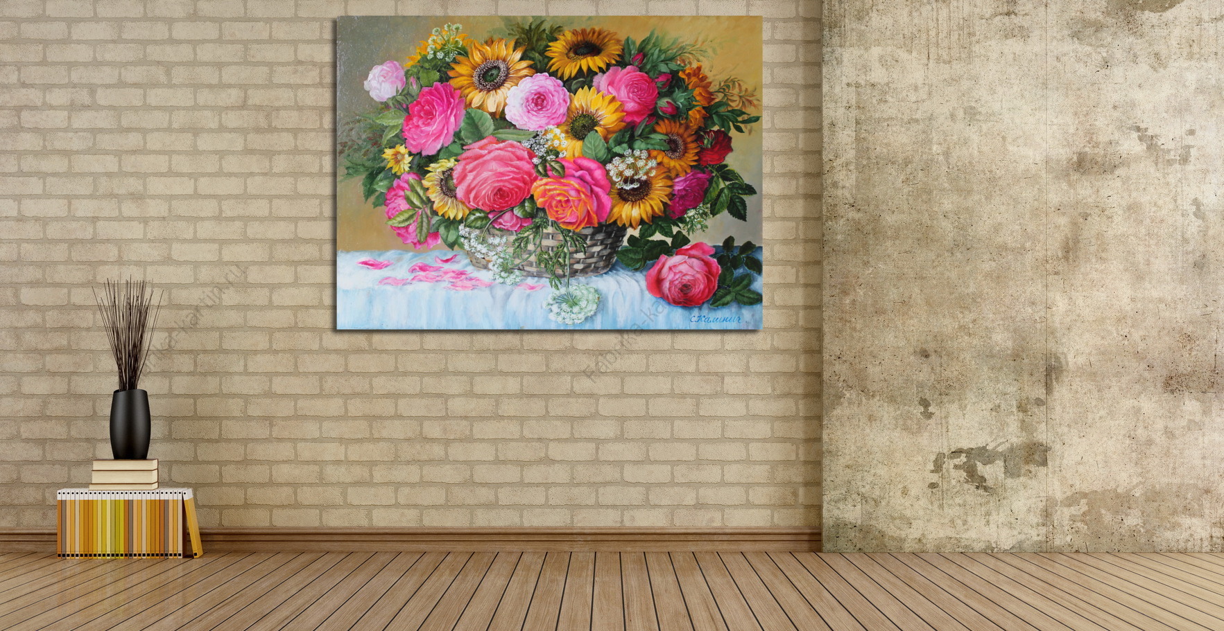 Репродукция картины "Корзина с розами. "