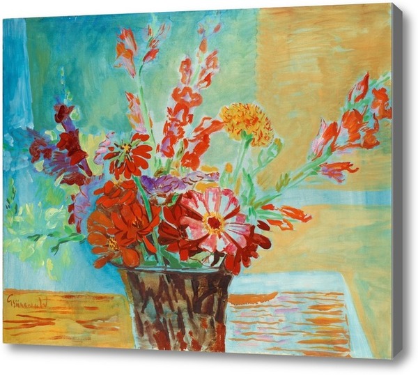 Репродукция картины "Натюрморт с Цинниями"