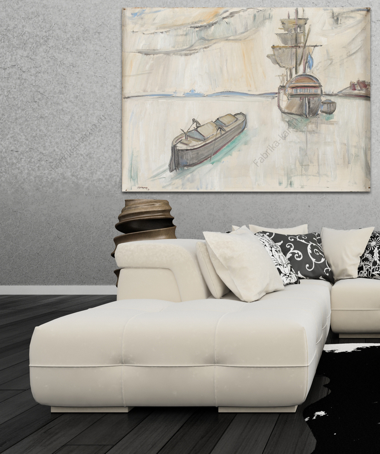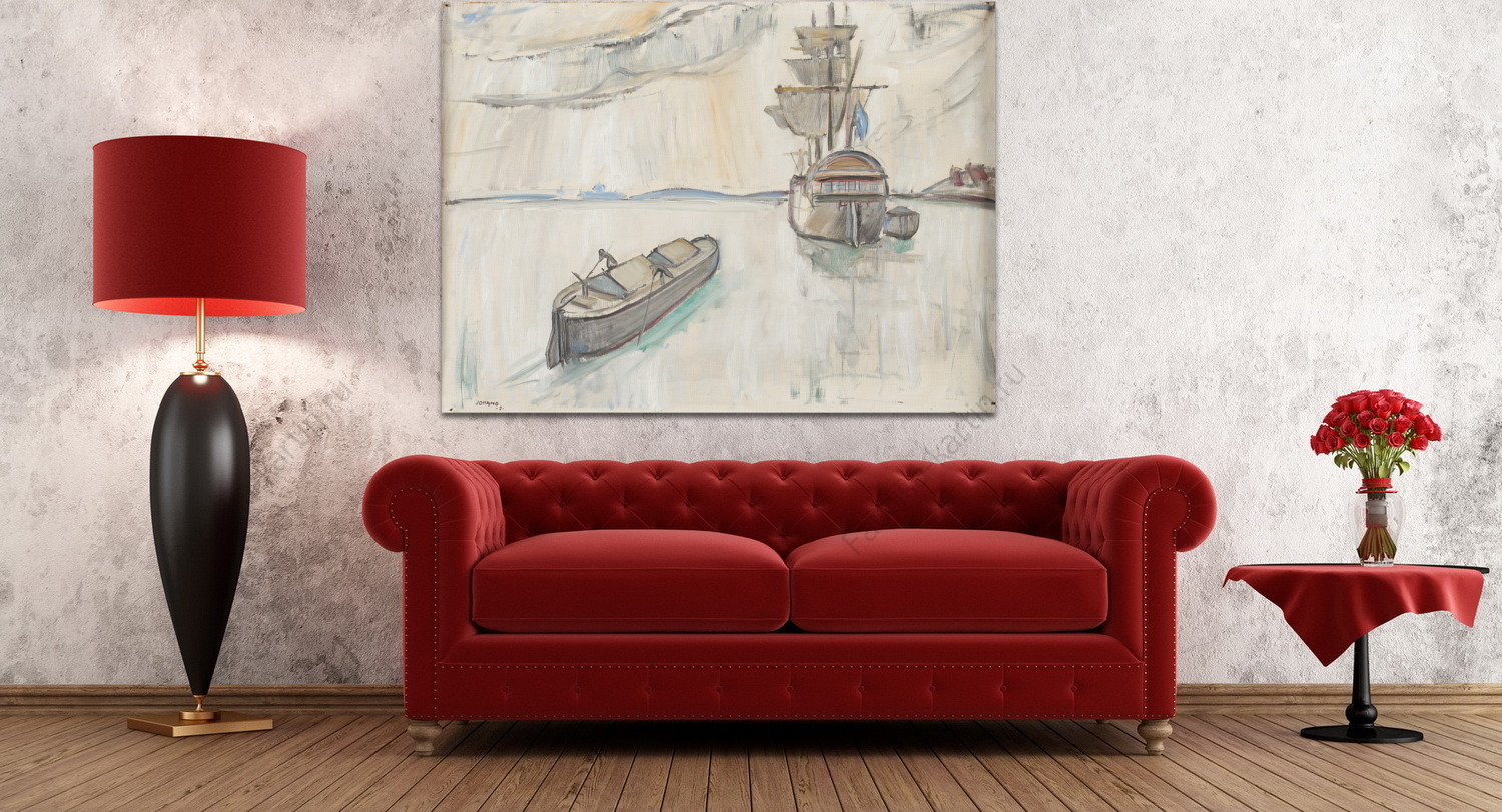 Репродукция картины "Грузовое судно во главе остальных судов"