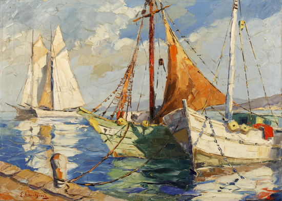 Репродукция картины "Лодки в гавани Средиземного моря"