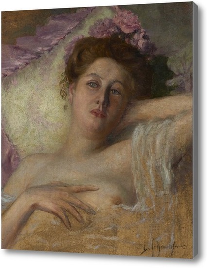 Репродукция картины "Молодая женщина с цветами в волосах"
